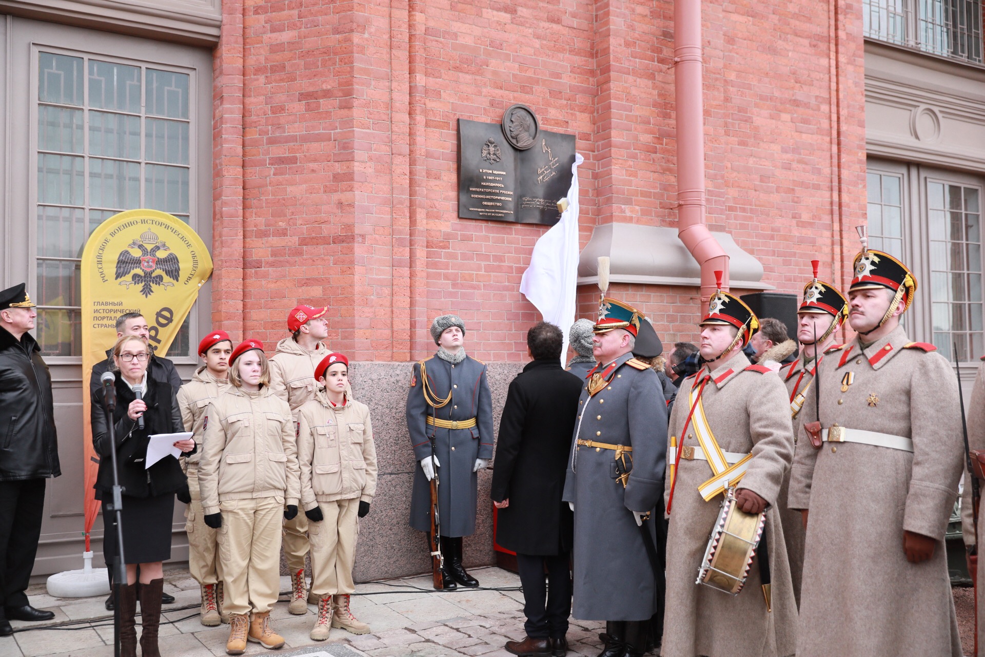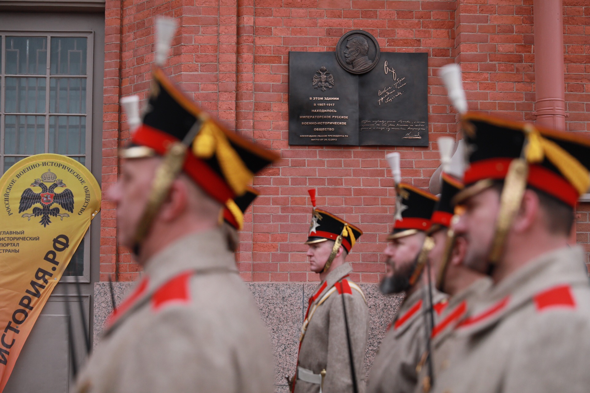 Впервые за последние 100-лет в Санкт-Петербурге открыта памятная доска с портретом и подписью Императора Николая II, который в 1907 принял звание почетного Председателя Русского военно-исторического общества, даровав ему право именоваться «Императорским». В здании бывшего Артиллерийского исторического музея (ныне – Музея артиллерии, инженерных войск и войск связи Минобороны России) с 1907 по 1917 годы располагался Совет, канцелярия и хранилище основного фонда Императорского Русского военно-исторического общества.