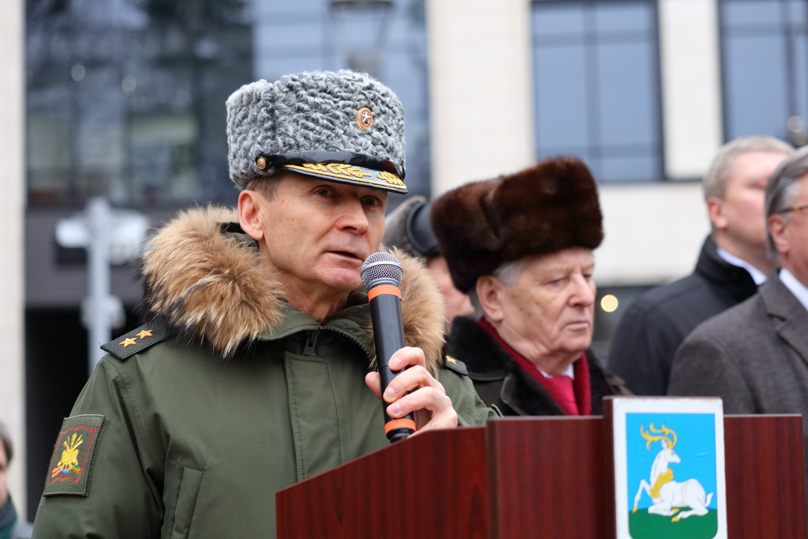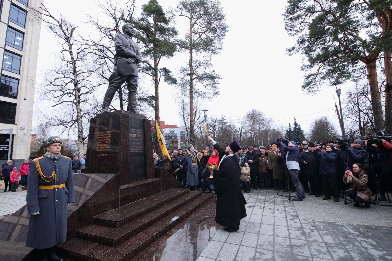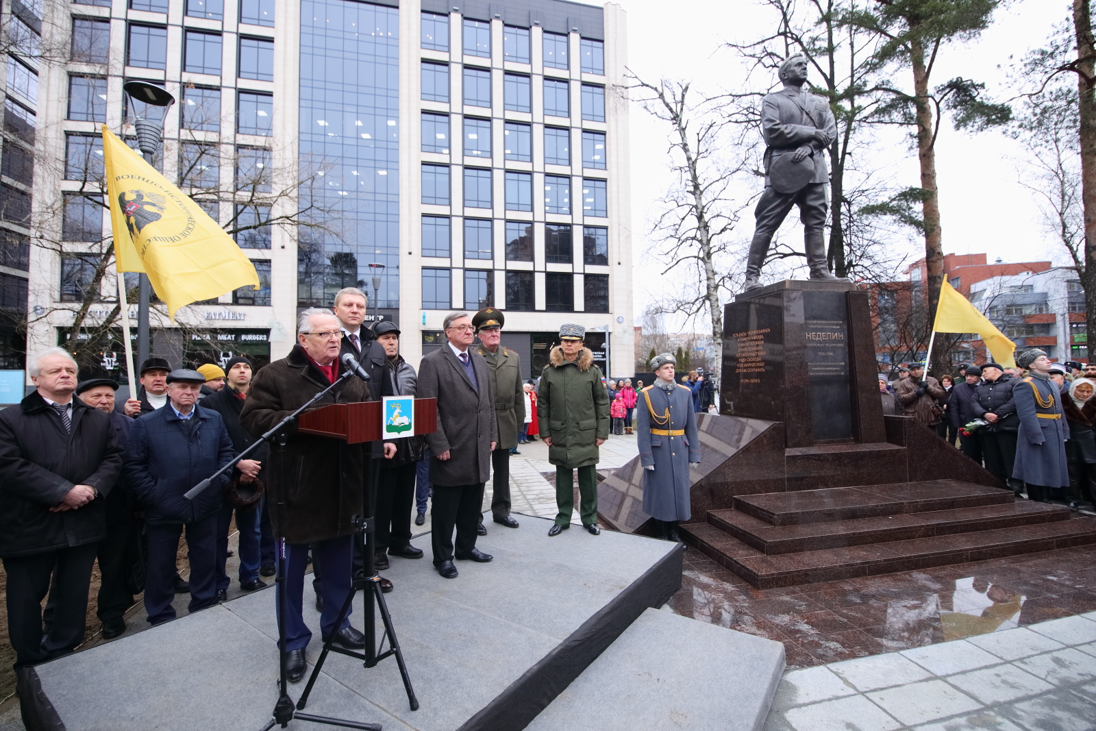 - По поручению Министра культуры Российской Федерации, Председателя Российского военно-исторического общества приветствую и поздравляю Вас со знаковым событием – открытием Памятника Герою Советского Союза, Главному Маршалу артиллерии Неделину Митрофану Ивановичу!