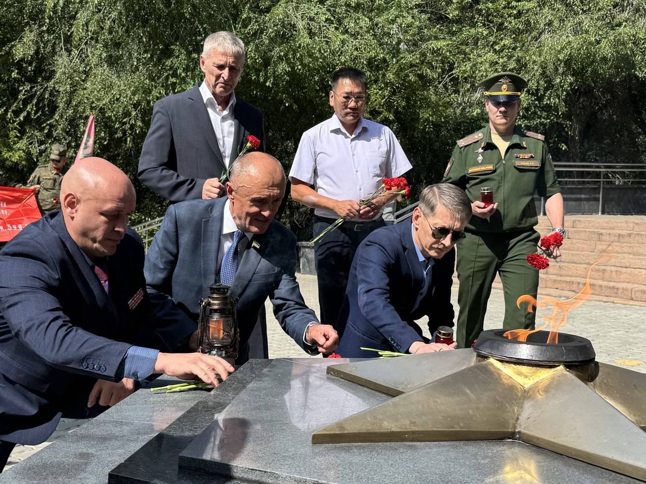 На Мемориале Победы в Улан-Удэ прошло торжественное зажжение «Пламени Победы». Также в рамках акции состоялась передача частички вечного огня автопробегу «Пламя Победы», который пройдет по маршруту наступления войск Красной Армии с участием ветеранов Бурятии и делегации из Санкт-Петербурга.