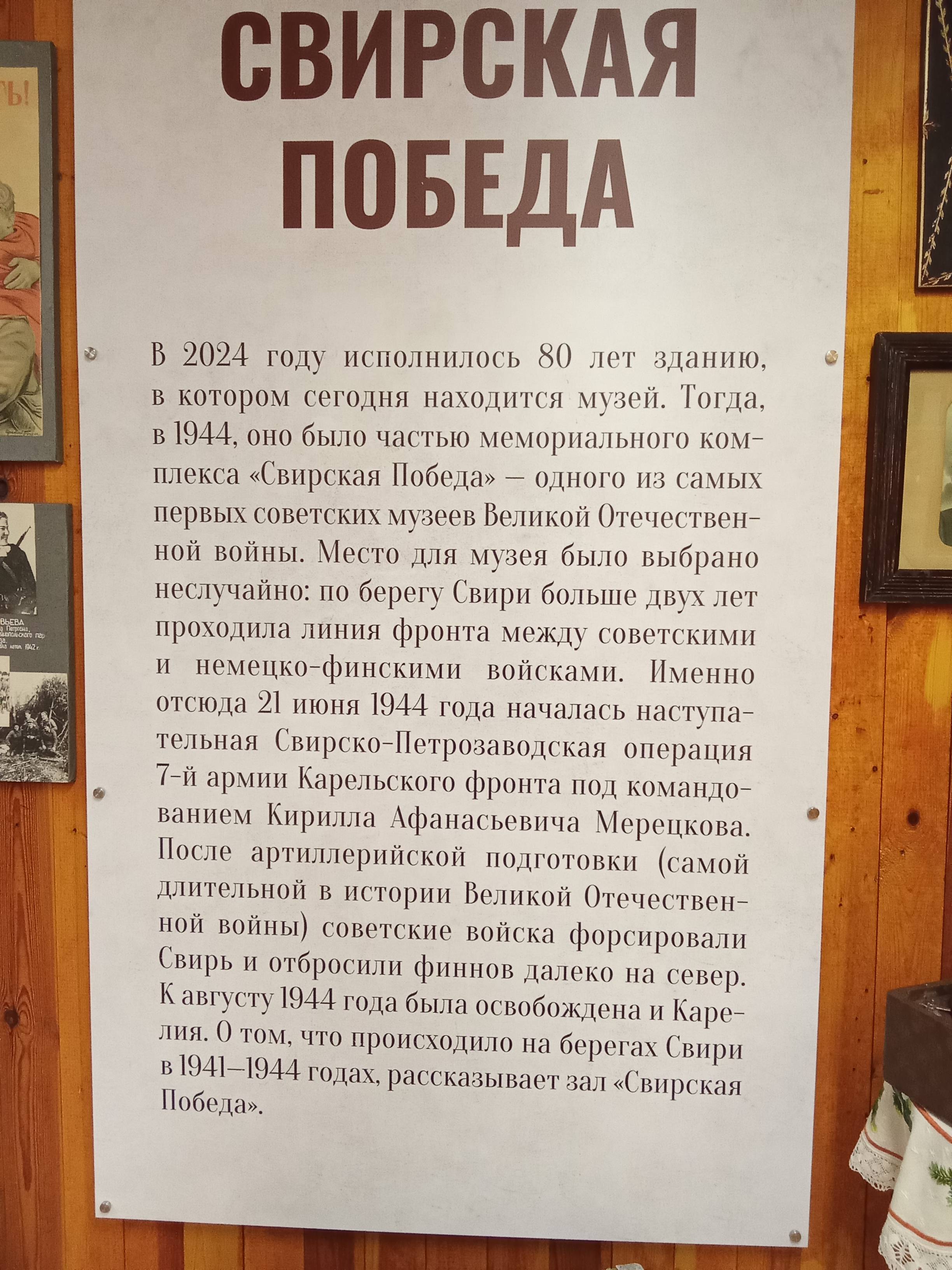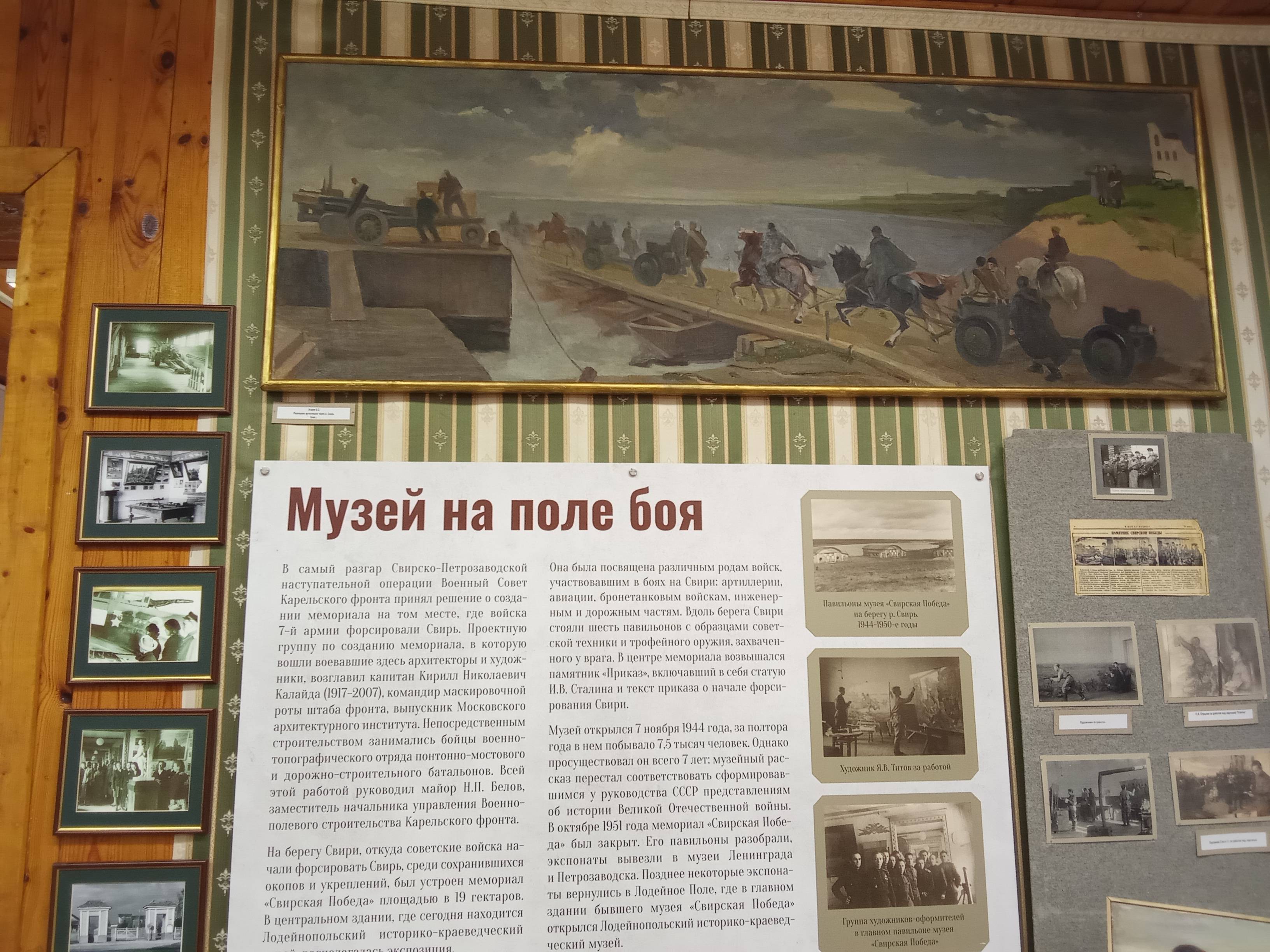 - Открытый ещё в 1944 году, мемориал «Свирская Победа» стал первым музеем в нашей стране, посвящённым истории Великой Отечественной войны. По решению командования Карельского фронта он был спроектирован и создан силами бойцов Красной Армии, имевших гражданские специальности.