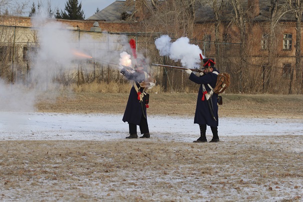 После лекции был разыгран эпизод сражения, в котором встретились в бою солдаты Томского пехотного полка, Донской казачьей батареи и Первого полка морской артиллерии армии Наполеона. Батальная сцена выступила яркой иллюстрацией к сказанному и вызвала у кадет восторженную реакцию. Зрители увидели действия орудийного расчета, приемы заряжания и стрельбы из мушкетов, строевые приемы, способы маневрирования, услышали русские и французские команды.
