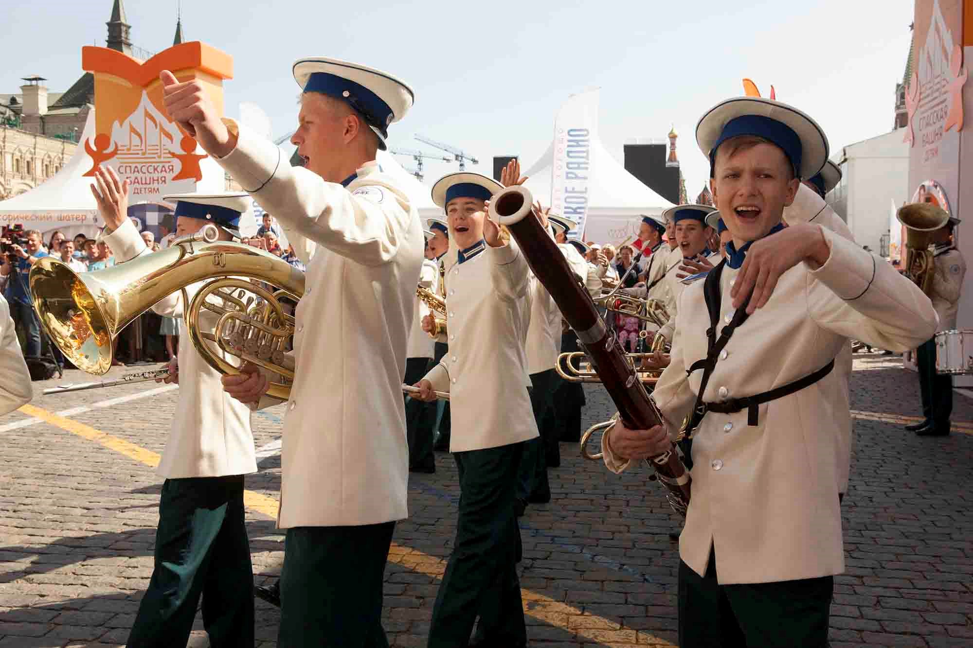 В рамках фестиваля «Спасская башня» на Красной площади прошел Фестиваль детских и молодежных духовых оркестров «Спасская башня детям». В этом году в нем приняли участие 10 детских духовых оркестров и шесть детских ансамблей ударных инструментов.