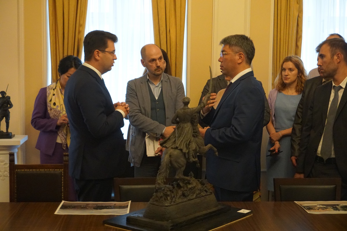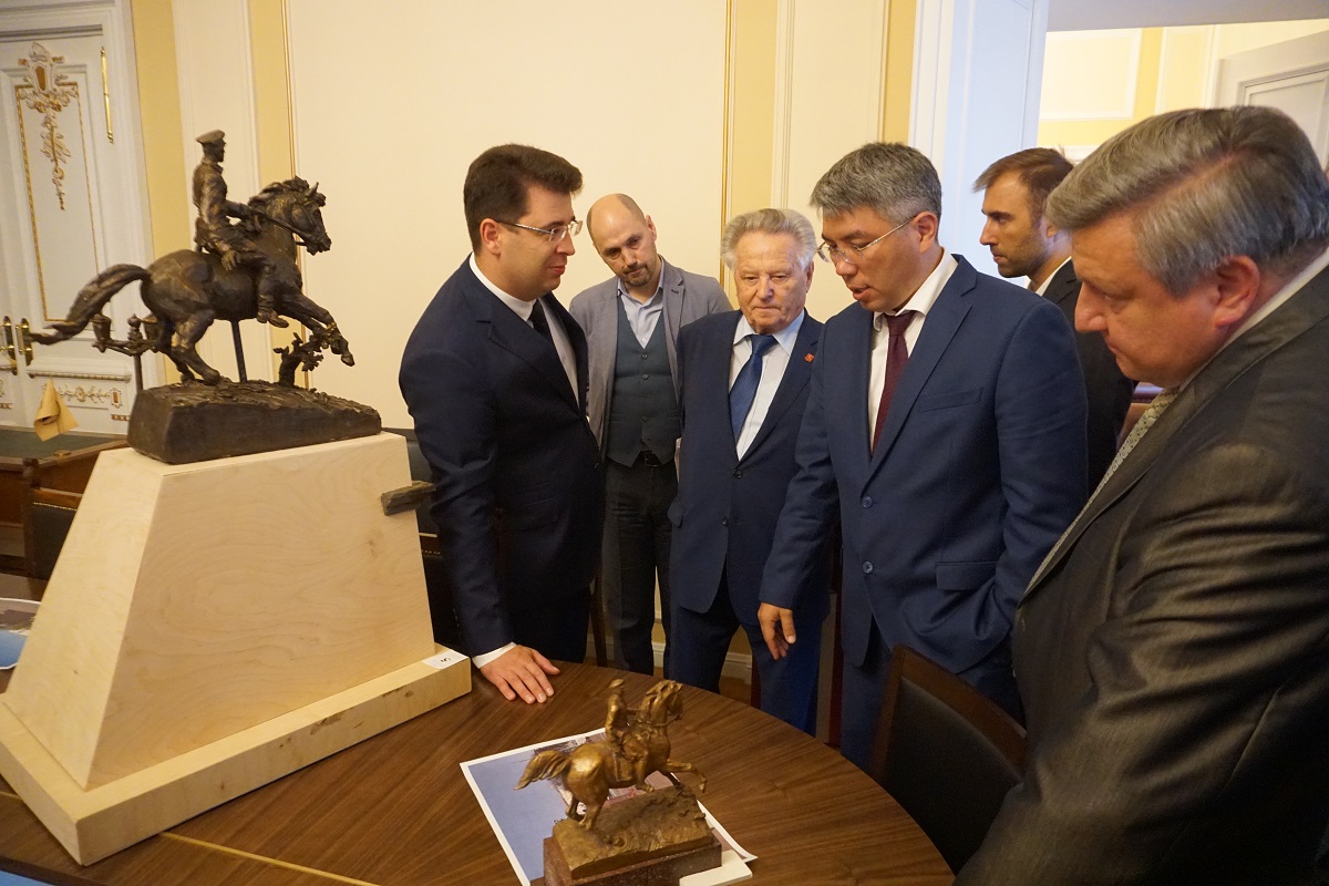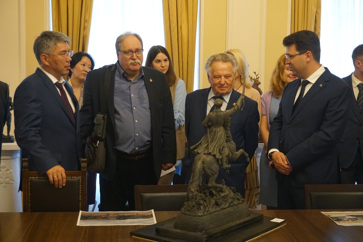 В начале мероприятия Николай Овсиенко по поручению Министра культуры РФ, Председателя РВИО Владимира Мединского вручил Алексею Цыденову членский билет Российского военно-исторического общества. Глава Бурятии возглавляет Попечительский Совет регионального отделения РВИО в республике и лично курирует знаковые проекты Общества, в том числе и установку памятника Константину Рокоссовскому. В ходе осмотра макетов Алексей Цыденов отметил высокую художественность работ и предложил организовать среди жителей Бурятии народное голосование и реализовать тот проект, который наберет наибольшее количество голосов.