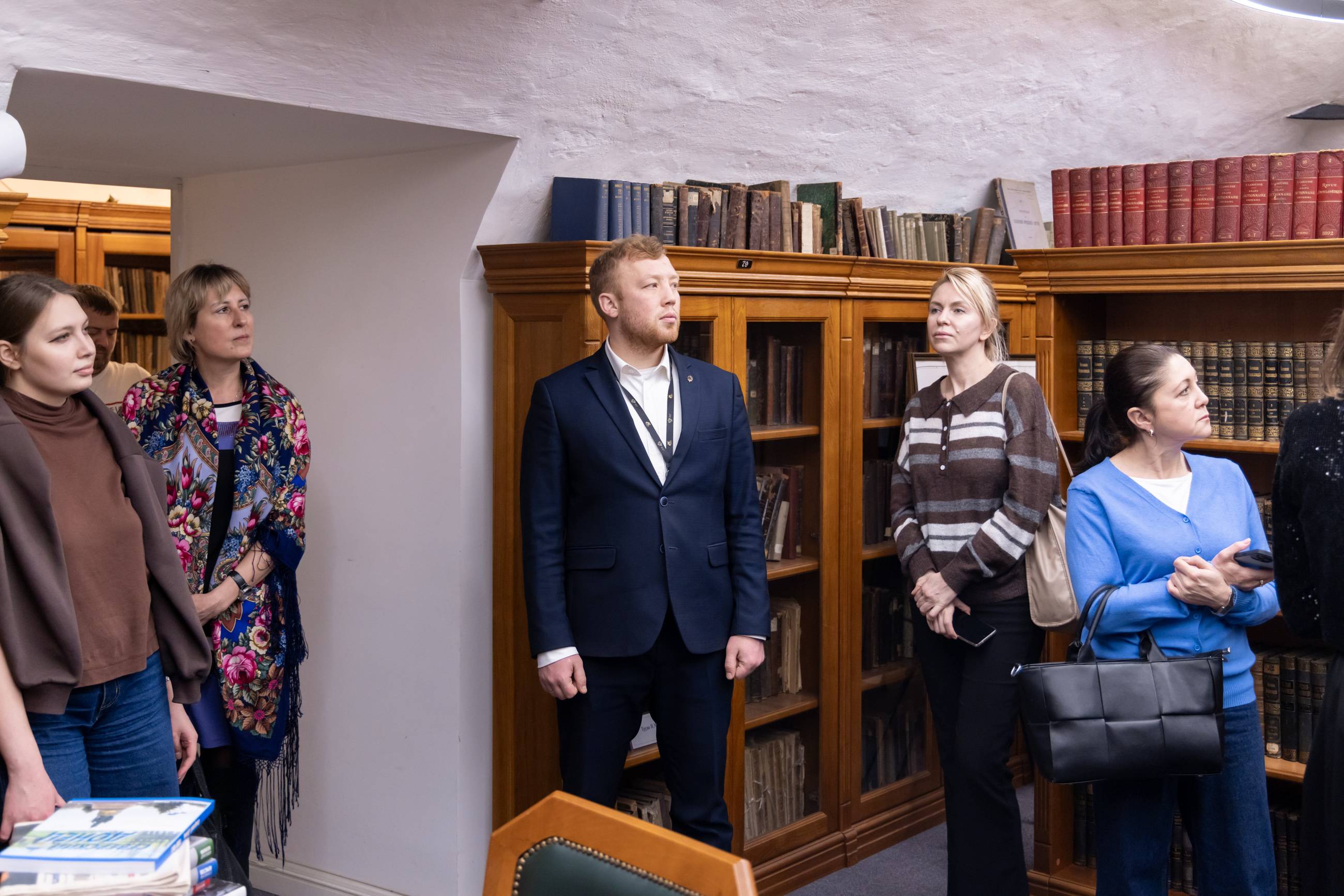 Перед началом торжественной церемонии для почетного гостя провели экскурсию по штаб-квартире РВИО и рассказали историю реставрации «Дома Трубецкой-Бове» в Петровском переулке.