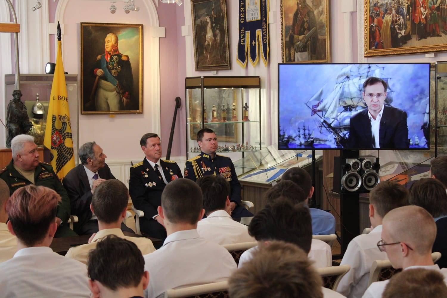 - В рамках открытия Клуба состоялась торжественная церемония вноса флага Российского военно-исторического общества, боевых знамен частей и соединений действующей армии периода Великой Отечественной войны. Вечер открылся фрагментом видеолекции В.Р. Мединского «Адмирал Ушаков», где Владимир Ростиславович говорит о семейных офицерских традициях и призывает молодежь к выбору офицерской профессии.