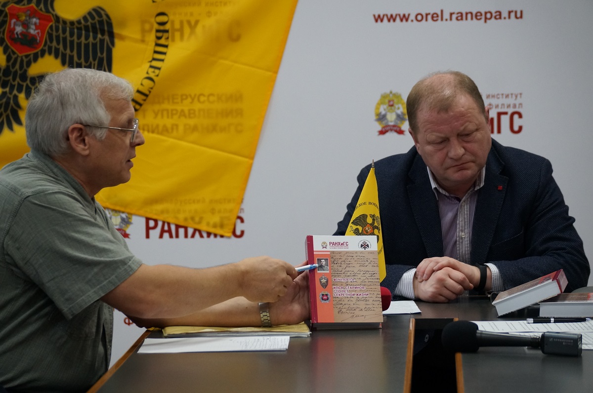 Сегодня в Орле прошла презентация книги Павла Меркулова «Илья Старинов. Сто лет секретной жизни». Мероприятие приурочено к 100-летию органов госбезопасности. Издание подготовлено совместными усилиями Российского военно-исторического общества и Среднерусского института управления – филиала РАНХиГС. В книге использованы рассекреченные документы, многие их которых опубликованы впервые.