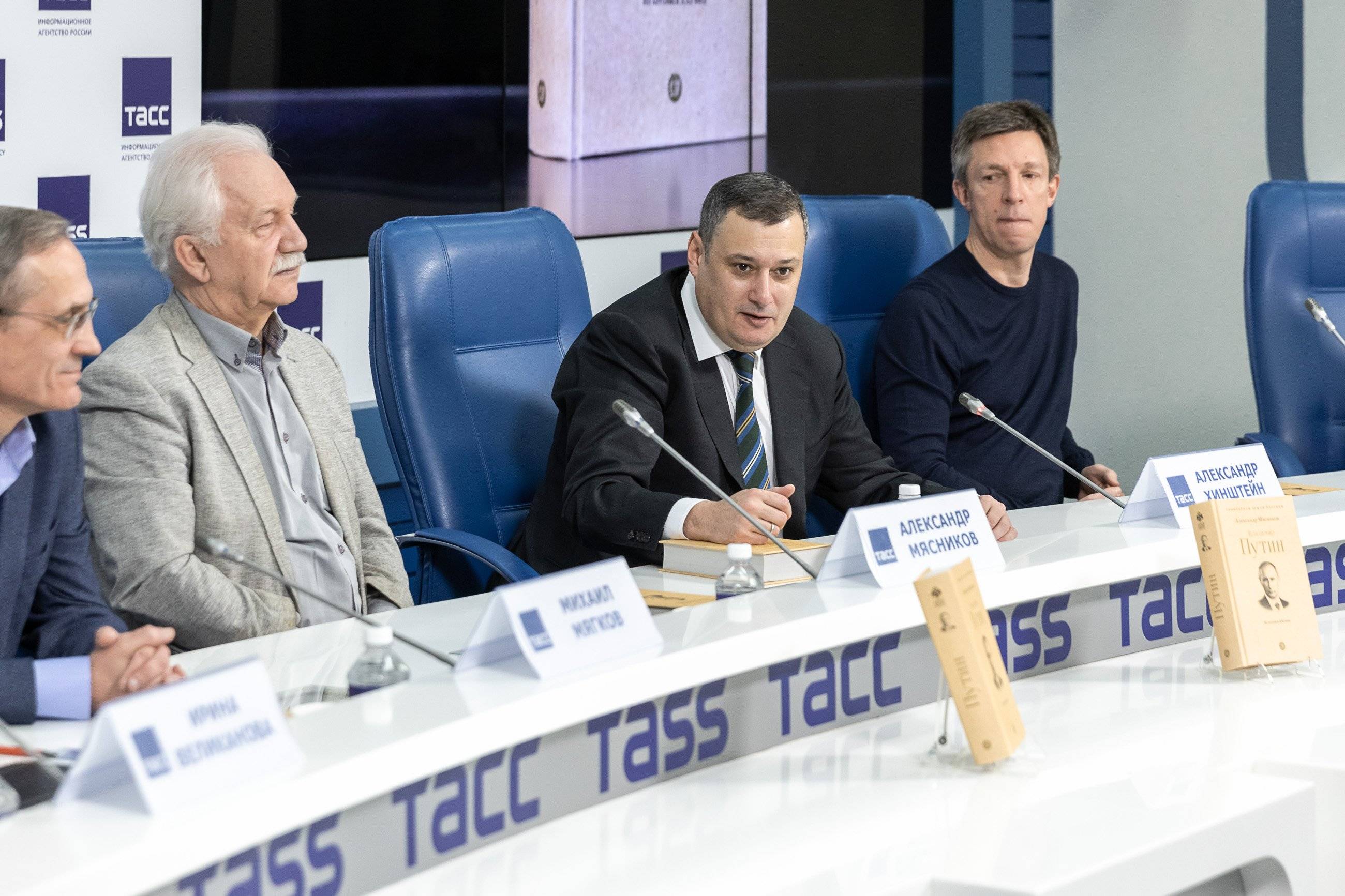 Сегодня в Пресс-центре ТАСС состоялась презентация книги писателя и историка Александра Мясникова «Владимир Путин. Из летописи XXI века» (серия «Собиратели Земли Русской»).