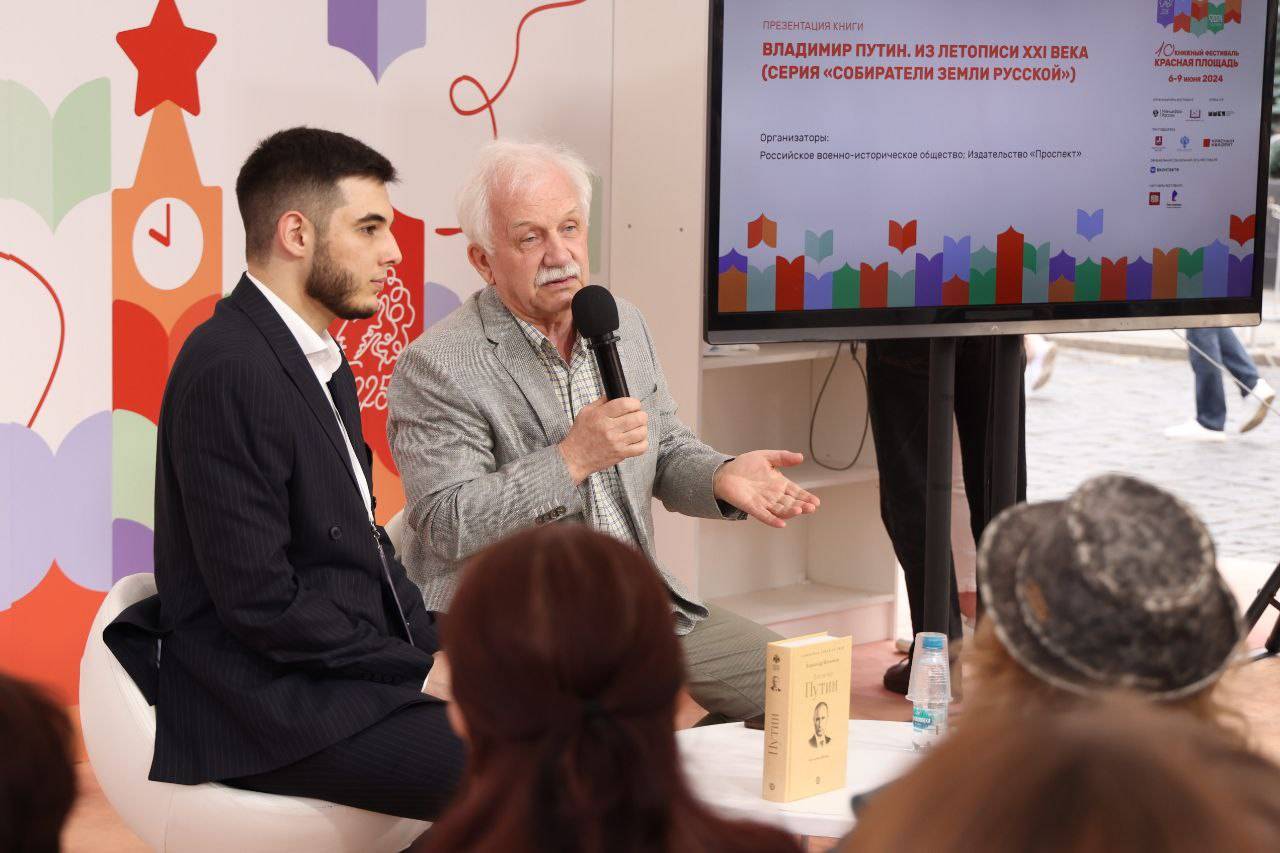 На книжном фестивале Красная площадь в павильоне «История Отечества» состоялась презентация книги писателя и историка Александра Мясникова «Владимир Путин. Из летописи XXI века» (серия «Собиратели Земли Русской»).