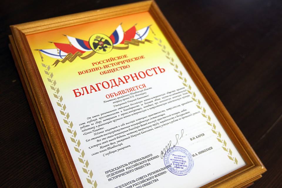 В Музейно-выставочном центре Тамбовской области при поддержке Российского военно-исторического общества состоялась презентация «Книги памяти», в которую вошли очерки о мичуринцах, отдавших жизни, защищая интересы нашей страны в Афганистане, Чечне, Дагестане и Сирии.