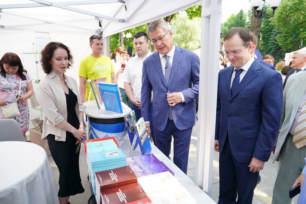 - Сегодня первый день фестиваля, он очень важен. В Уфе проходят интересные мероприятия. Важно, что круг участников очень широкий. Здесь много книгоиздателей и литературных клубов. К нам прибыли делегации из Кыргызстана, Узбекистана, Казахстана, Беларуси. От Республики Беларусь прибыла первый заместитель председателя Союза писателей Беларуси Елена Анатольевна Стельмах. Ярмарка будет проходить три дня, и наша задача – вовлечь в её программу как можно больше детей, чтобы они ближе познакомились с книгой, - рассказал Глава Республики Башкортостан Радий Хабиров.