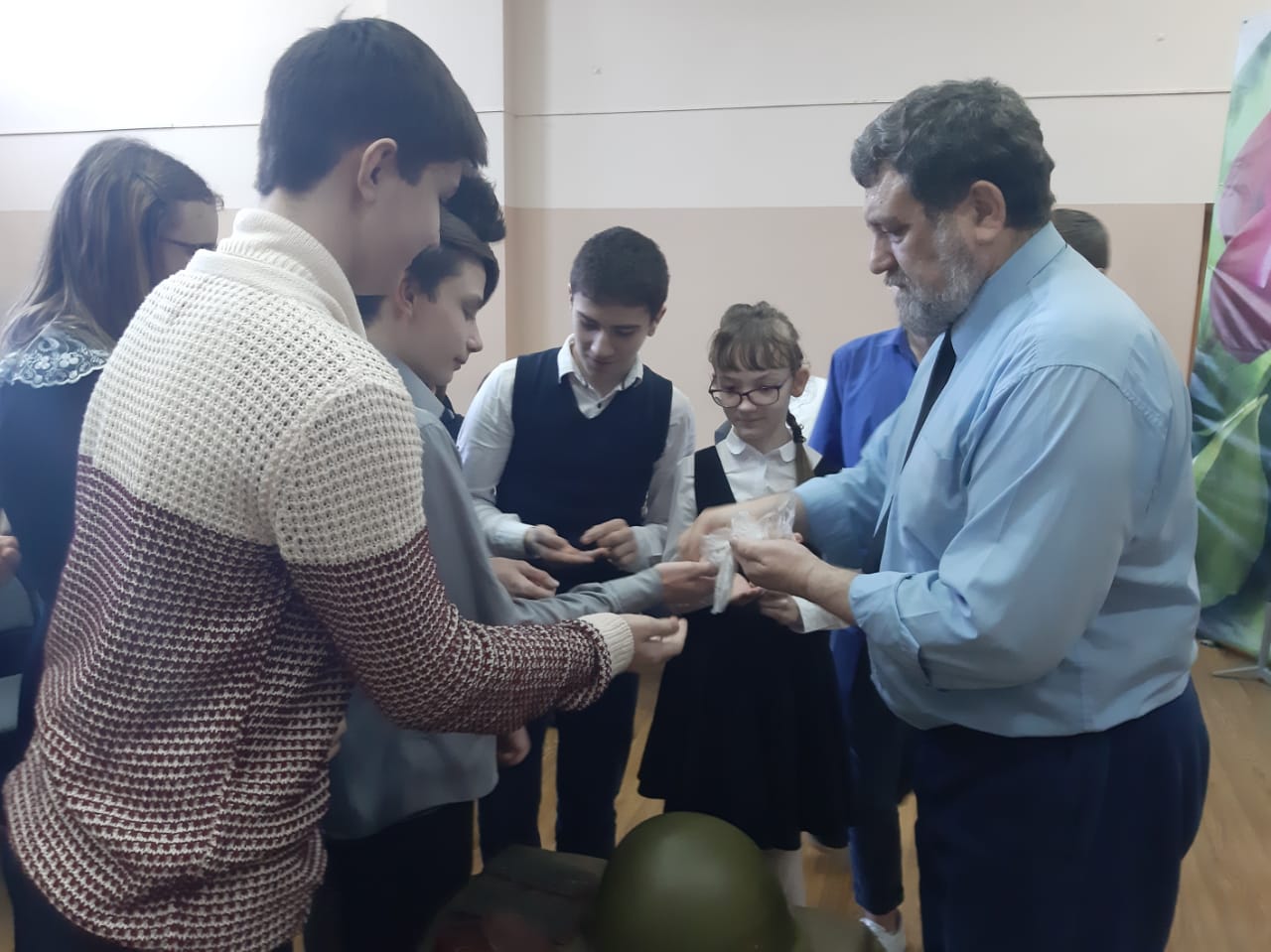 В завершении мероприятия представитель Российского военно-исторического общества Александр Петров от имени организации вручил гостю благодарность, а также передал школе коллекцию фильмов о военной истории России и великих полководцах.