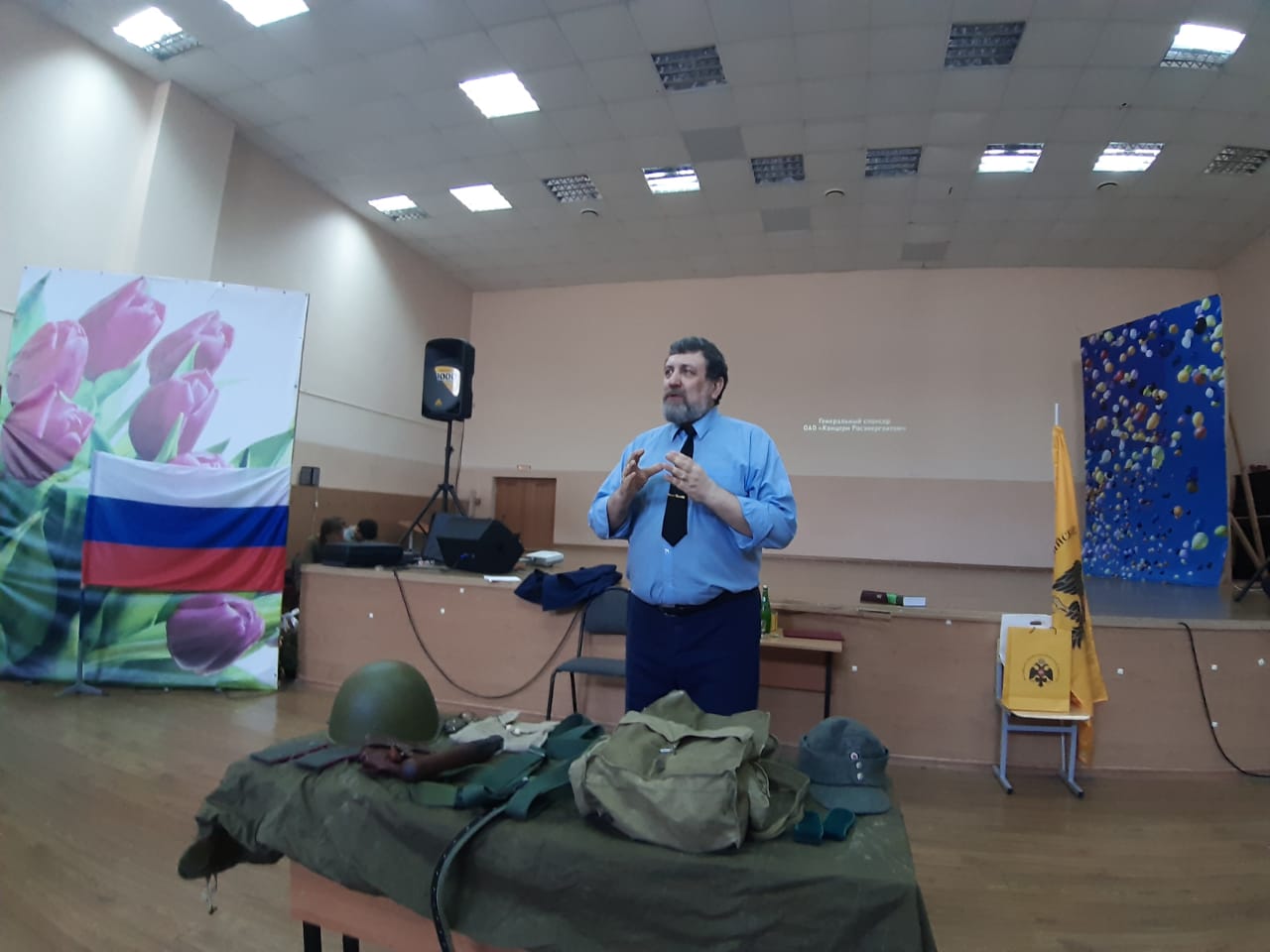 Встреча проходила в интерактивном формате. Ветеран показал ребятам документальный фильм о своих боевых товарищах-ликвидаторах аварии на Чернобыльской АЭС, о работе вертолетчиков в первые дни после аварии. Также он рассказал о том, как выжить в условиях войны, о военной смекалке и как выбрать свой жизненный путь. После просмотра фильма прошло его обсуждение, в ходе которого школьники узнали о миссии и подвиге советских воинов в Афганистане.