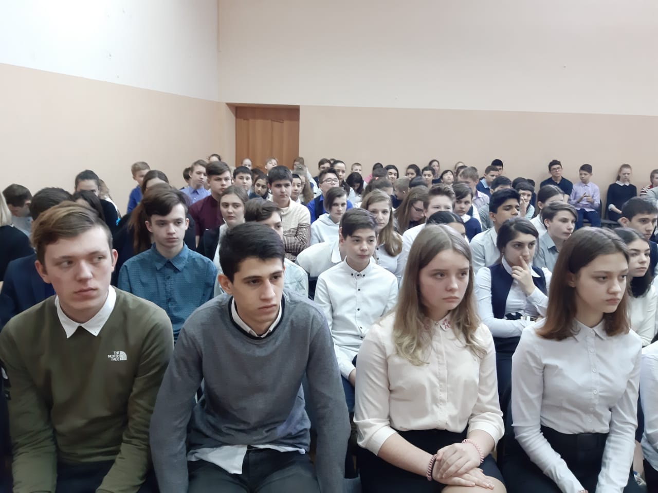 Тема урока - «Защита Отечества и современные войны». Гостем школы стал ветеран боевых действий в Афганистане, ликвидатор последствий на Чернобыльской АЭС полковник Валерий Шмаков, совершивший 478 боевых вылетов за полтора года пребывания в Афганистане. Партнеры РВИО - Военно-исторический клуб «5 дивизия» представили учащимся выставку обмундирования 1935 – 1941 годов.