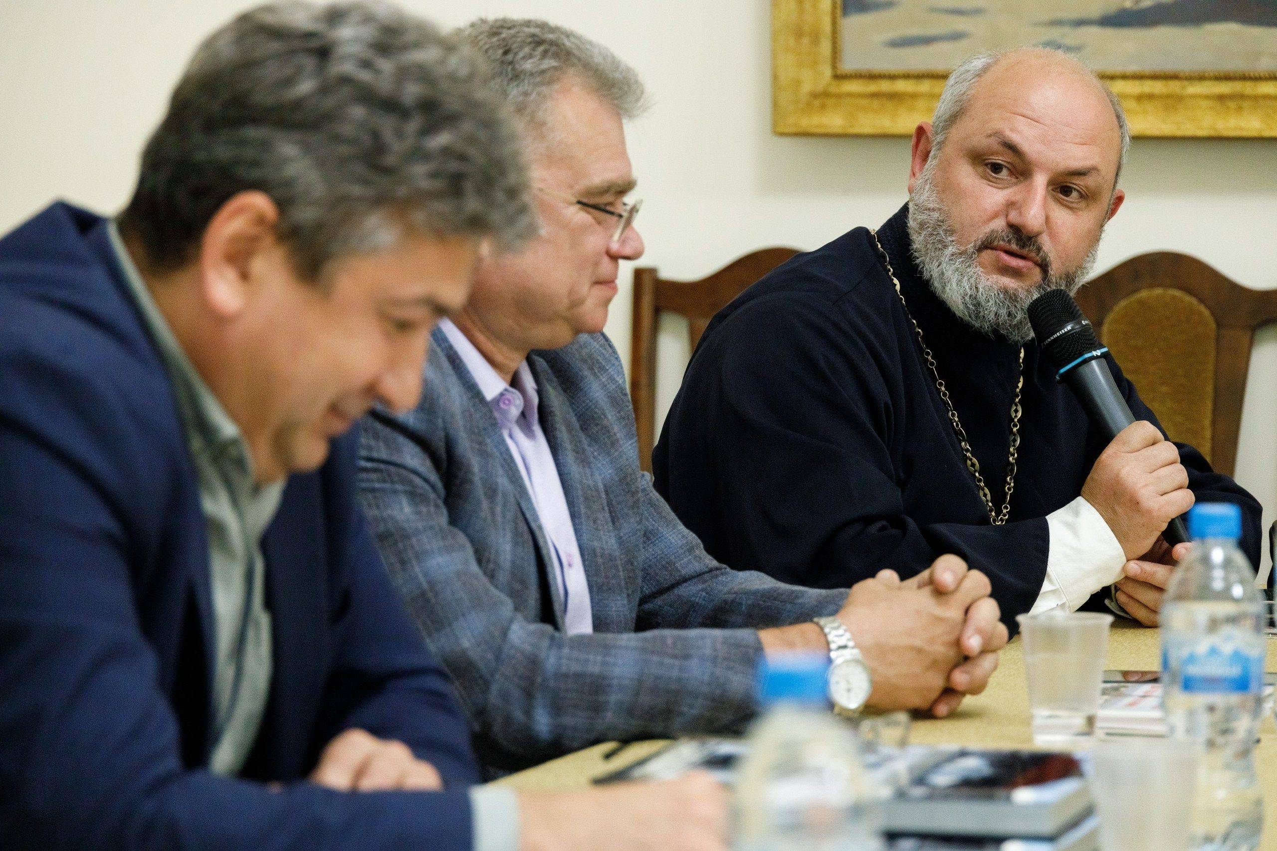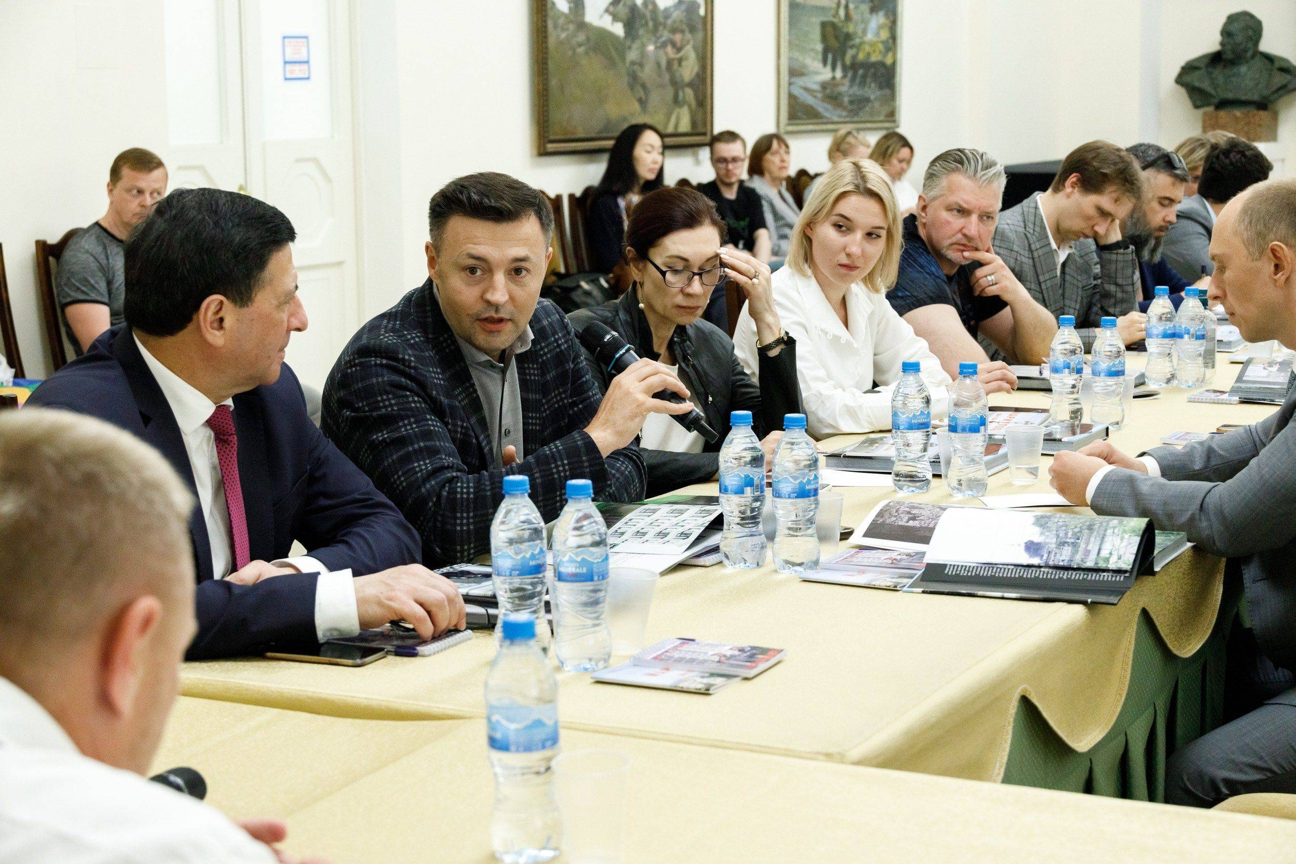 В рамках открытия фотовыставки состоялся круглый стол. Участие в мероприятии принял Заместитель Директора Департамента науки и образования Российского военно-исторического общества Денис Шполянский.
