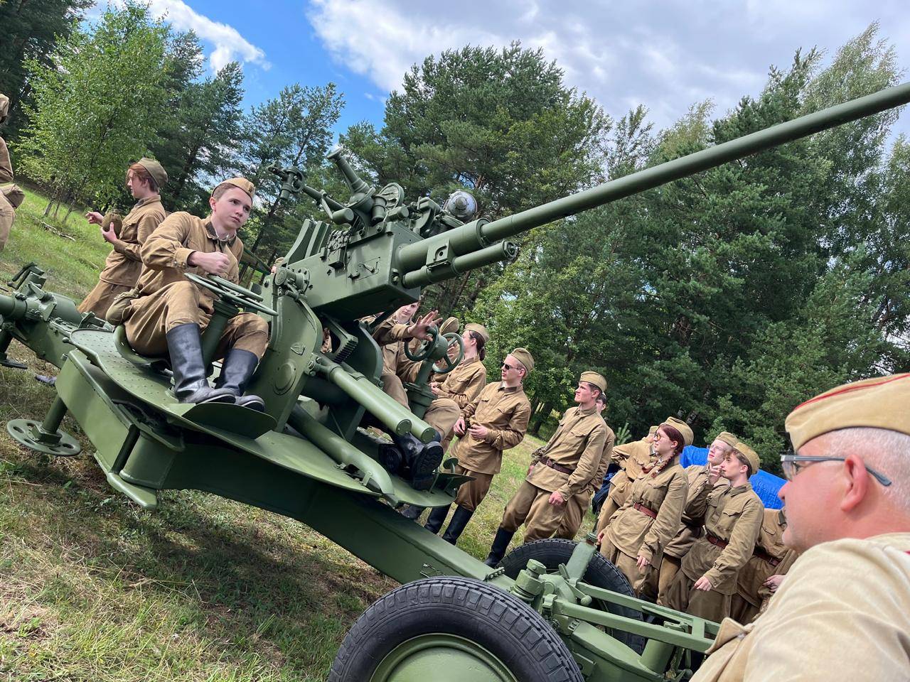 Почтить память павших в годы Великой Отечественной войны приехали более сотни юных участников военно-патриотических клубов. В форме бойцов Красной Армии ребята из Донецка, Луганска, Ленинградской области, Санкт-Петербурга и Ярославля прошли пешим маршрутом протяжённостью свыше 10 километров по местам ожесточённых боёв.