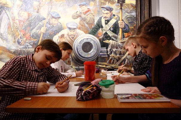В медиа-палатах Российского военно-исторического общества состоялся мастер-класс Народного художника России Василия Нестеренко для победителей – учащихся московских школ самого масштабного в нашей стране Международного онлайн конкурса детского рисунка, посвященного истории России «Историческая арт-эстафета – Лента времени».