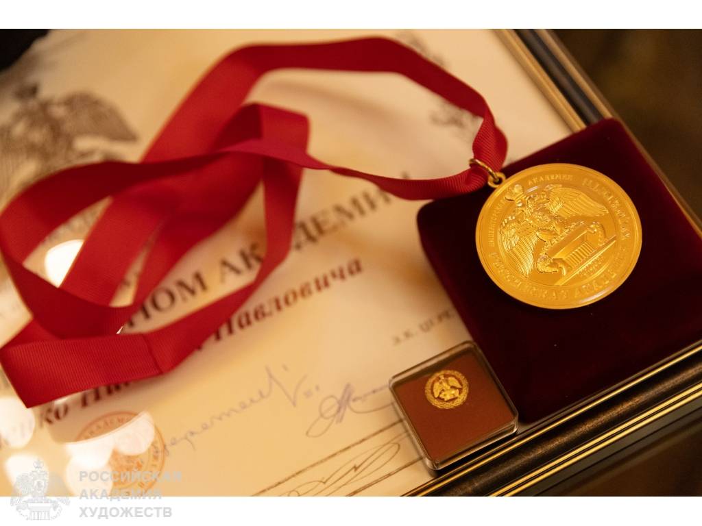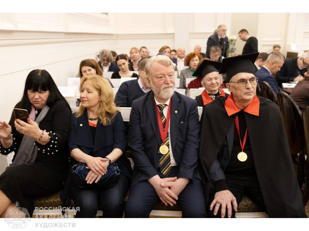 Заседание началось с торжественного вручения академических регалий вновь избранным Почетным членам Российской академии художеств: заместителю Председателя Российского военно-исторического общества Овсиенко Николаю Павловичу и художникам Кондулуковой Вере Ивановне, Арсенюку Юрию Михайловичу, Самакаеву Ильгизару Майберовичу.