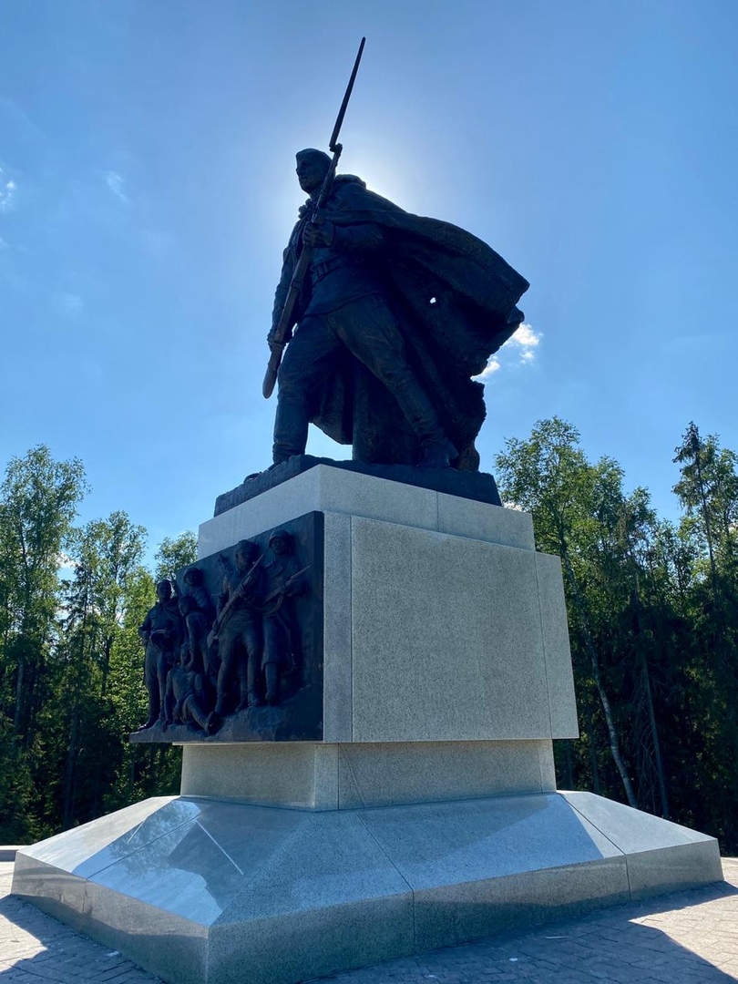 Победил вариант Студии военных художников имени Грекова. Коллектив авторов долго спорил, но в итоге остановился на образе солдата-защитника.