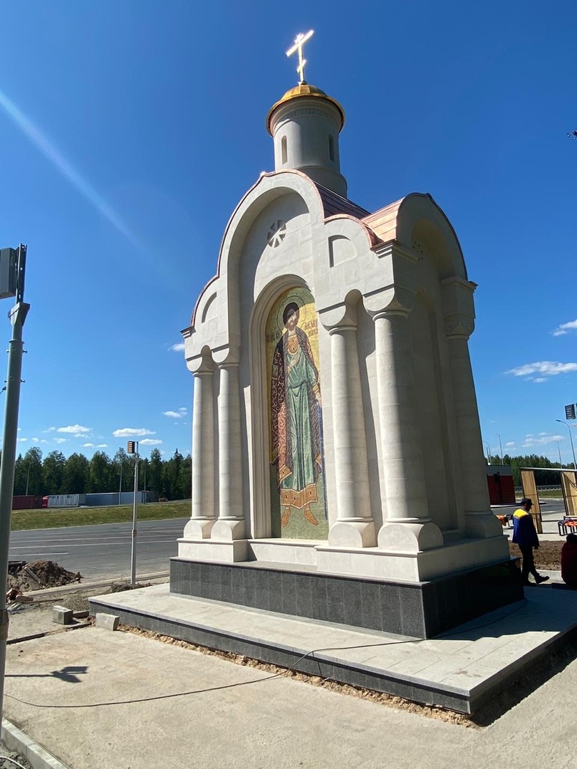 Киот и памятник представляют собой единый мемориальный комплекс, созданный на частные пожертвования Государственной компанией «Автодор» и Фондом развития науки и культуры «Таволга».