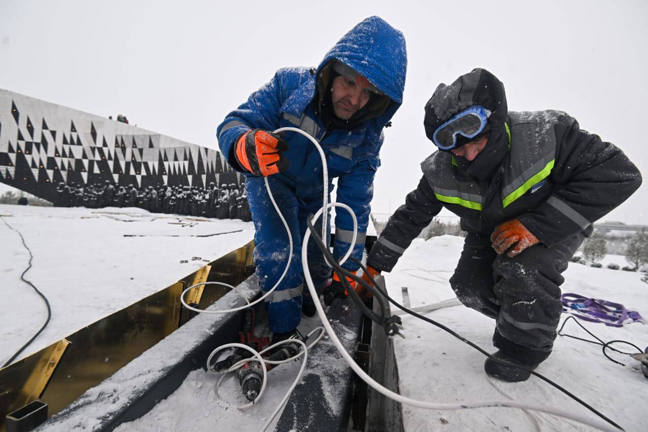 - Работу мы выполняем по прямому поручению Президента Российской Федерации. Российское военно-историческое общество трудится в тесном контакте с Военно-строительным комплексом Министерства обороны РФ и Правительством Ленинградкой области. Выполнен огромный объем работы. С 20 января планируется демонтаж строительных лесов. С завтрашнего дня начнем разбор верхнего яруса лесов, где стоит фигура матери. Несмотря на сложные погодные условия, мороз -30 градусов с ветром, наши мастера (авторы, скульпторы, архитекторы, монтажники, литейщики) в данной ситуации проявили трудовой героизм. Потому что во время штормового ветра, при таком морозе, на высоте 47 метров от земли – вас буквально сдувает, при этом работа выполнена на высоком уровне, - сказал Николай Овсиенко.