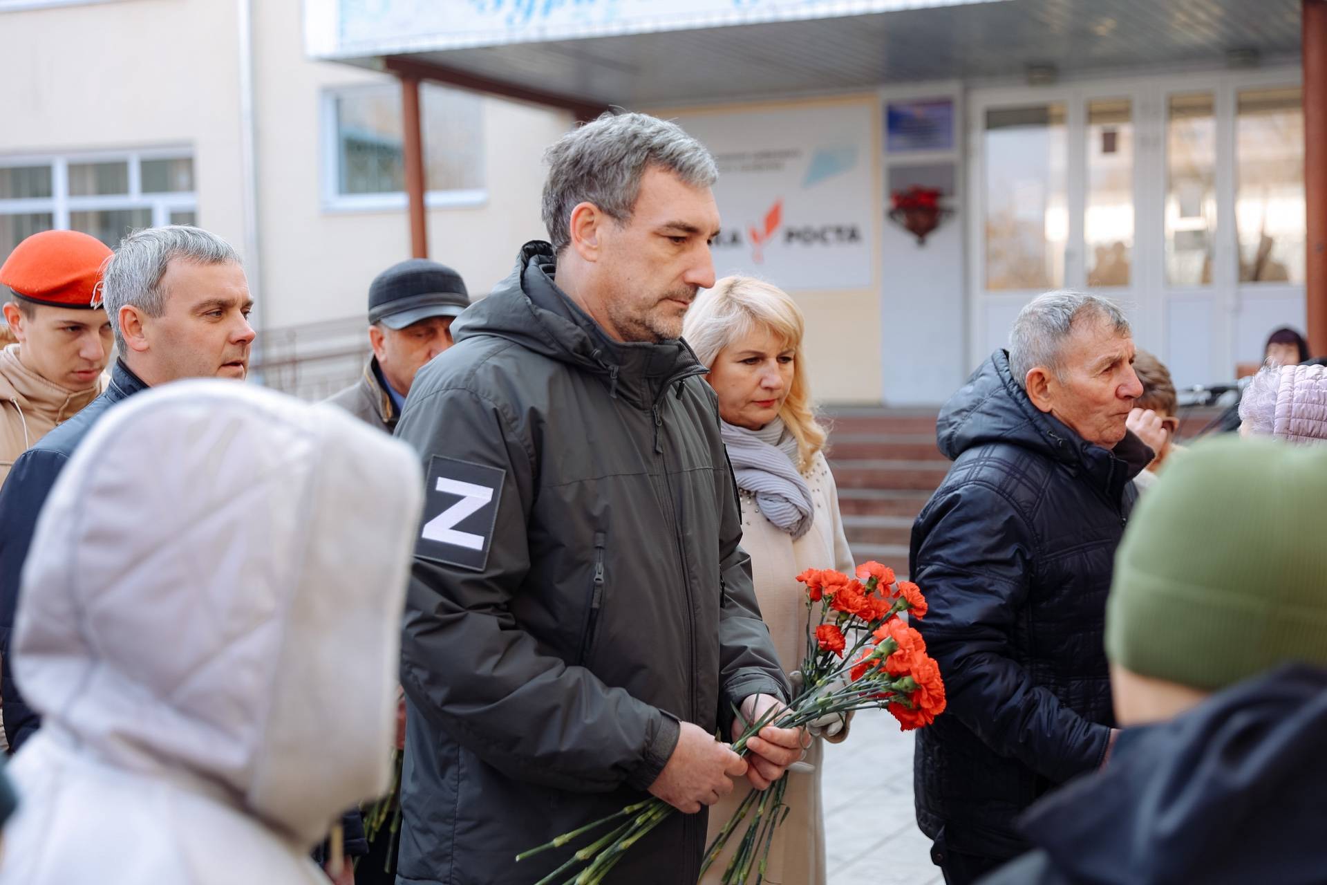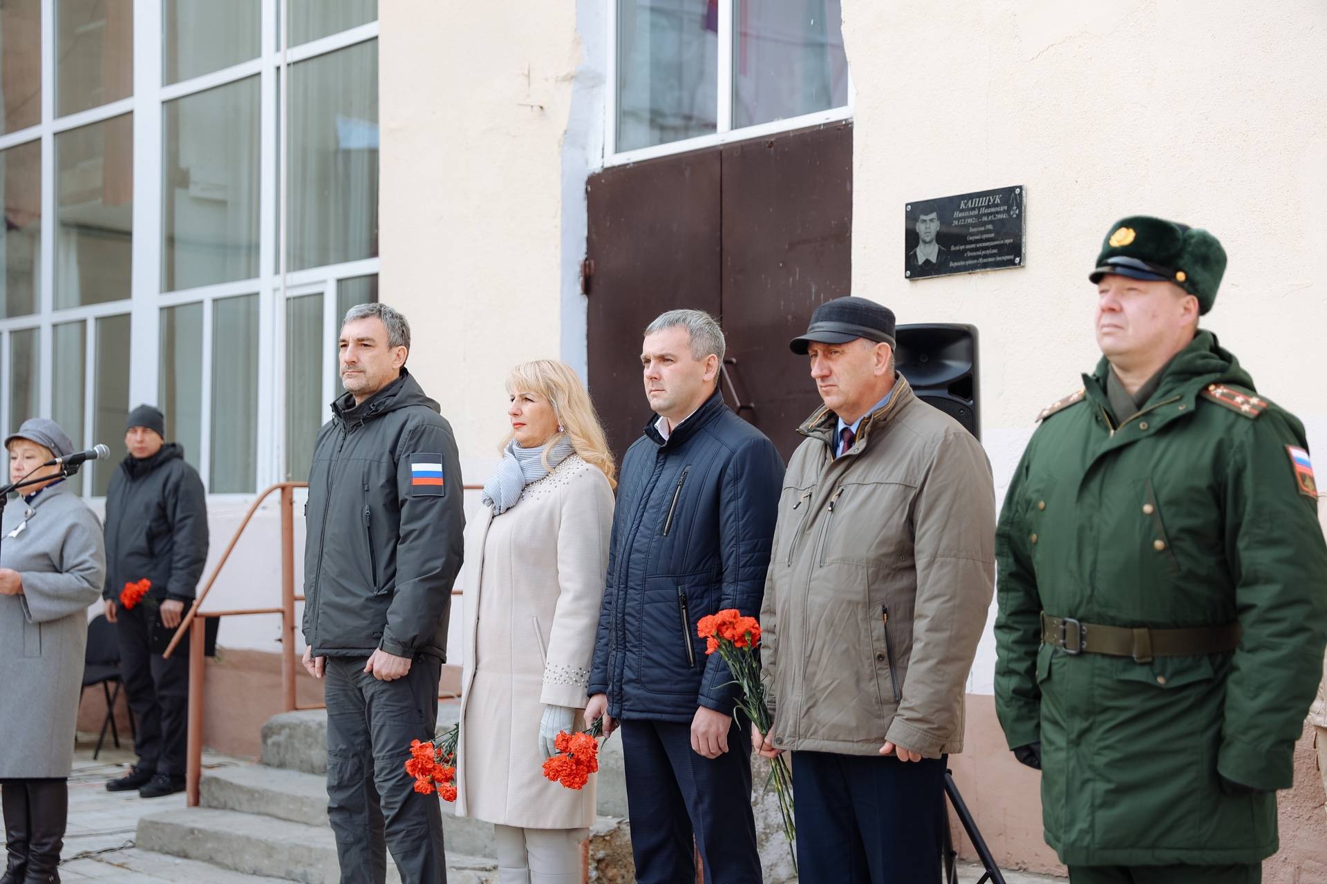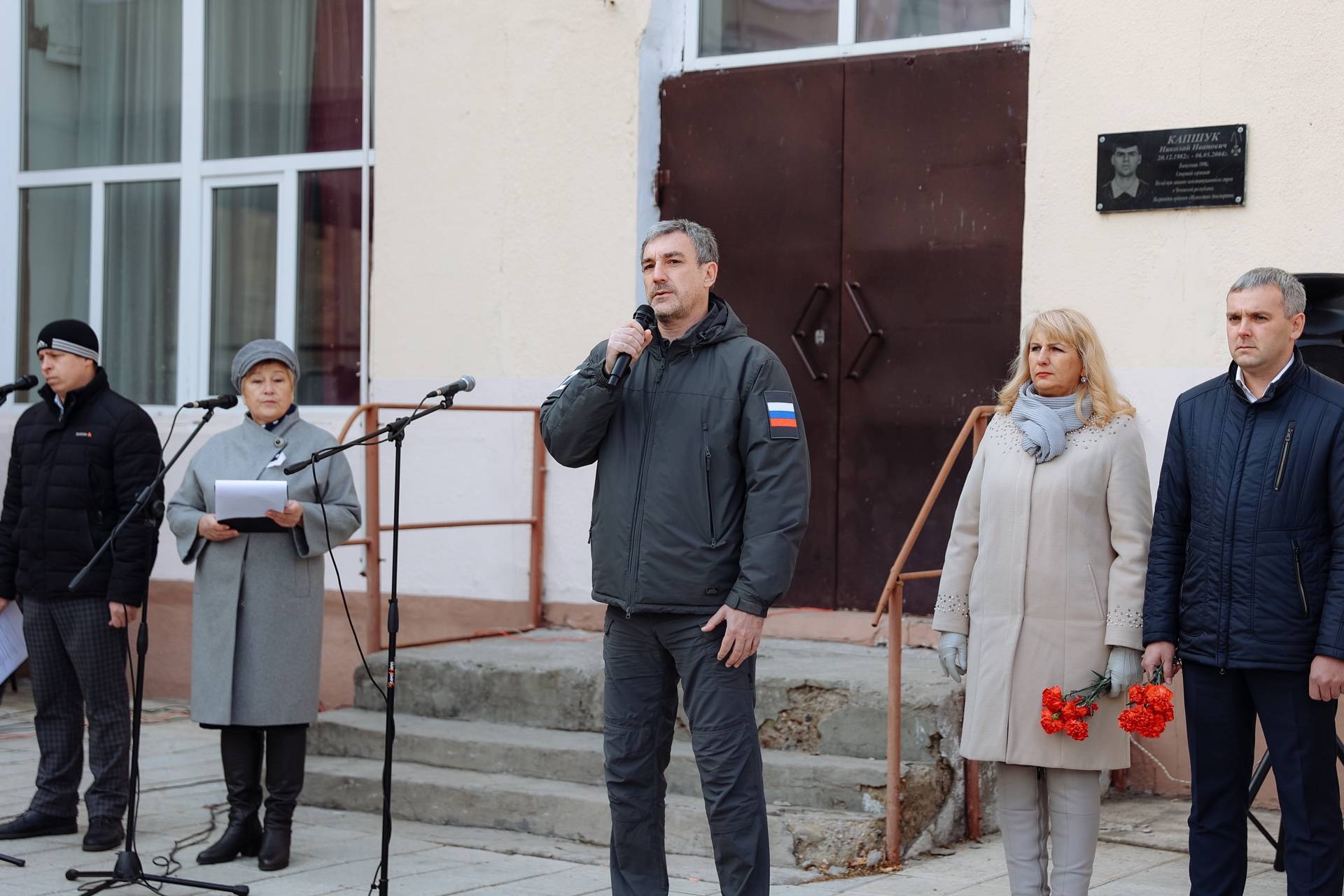 Сегодня в селе Среднебелая Ивановского округа на фасаде школы была торжественно открыта мемориальная доска в честь Героя России, летчика Василия Петровича Клещенко.