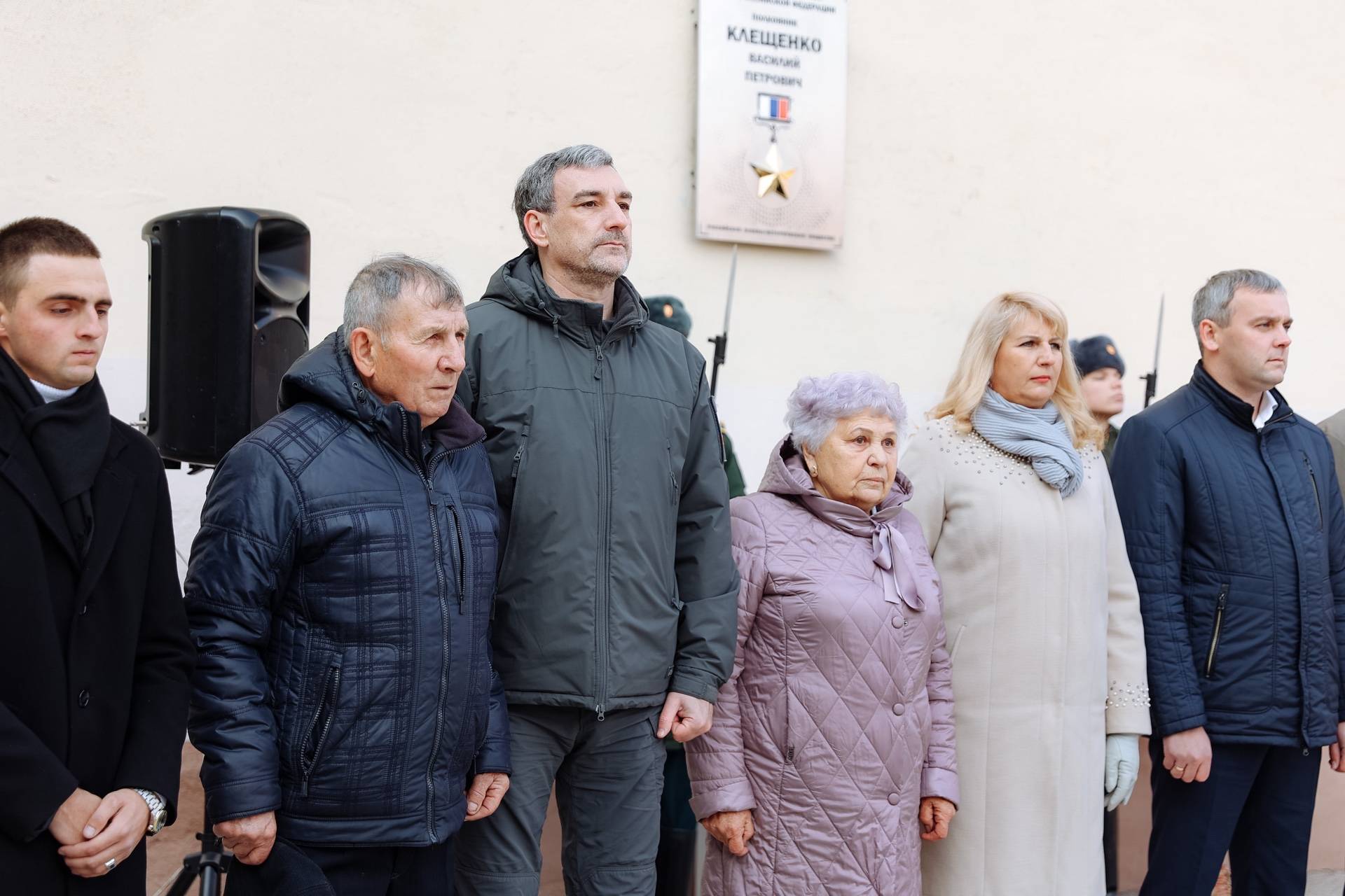 - Сегодня проходит Специальная военная операция. Тысячи наших земляков с оружием в руках защищают интересы нашей страны, чтобы мы могли жить под вот таким чистым небом, чтобы наши мальчишки и девчонки не знали, что такое война и не слышали взрывов. Василий Петрович Клещенко был настоящим офицером, профессионалом, одним из лучших летчиков. В его честь названа улица и школа в Торжке, его бюст установлен в Уссурийске. И здесь сегодня мы открываем мемориальную доску. Благодарю родителей Героя, Клавдию Ивановну и Петра Николаевича, за то, что воспитали такого сына, настоящего патриота нашей страны. Низкий Вам поклон! И вечная слава и память Василию Петровичу Клещенко, - отметил Василий Орлов.
