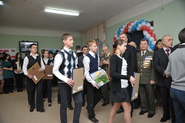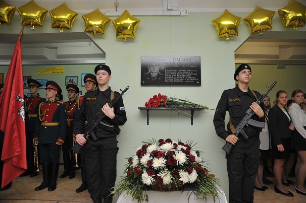 Мемориальную доску Кавалеру Ордена Мужества Сергею Александровичу Цаплину открыли начальник отдела управления заместителя Мэра Москвы в Правительстве Москвы по антитеррористической деятельности Вячеслав Попов и президент Международной ассоциации ветеранов Группы «А» Центра специального назначения ФСБ России Сергей Гончаров. После церемонии возложения цветов, перед собравшимися выступили воспитанники театральной студии «Сотворчество», которые подготовили литературно-музыкальную композицию, посвященную памяти всех павших за Отечество. Учащиеся подарили гостям подарки - свои рисунки.