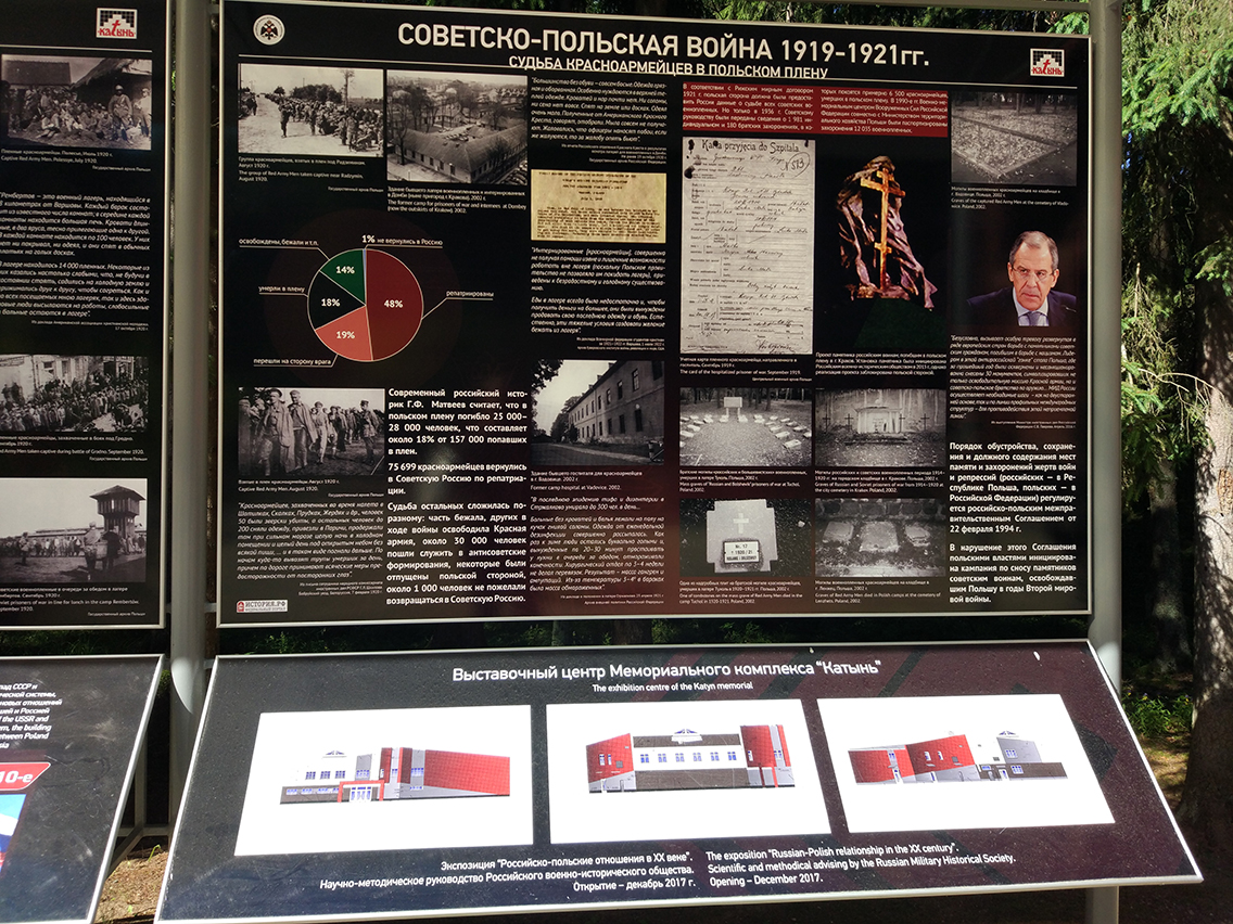 Российское военно-историческое общество обновит экспозицию в мемориальном комплексе в Катыни (Смоленская область) в декабре 2017 года, а благоустройство территории «российской» части мемориала будет осуществлено в 2018 году. На строительство выставочного центра уже было выделено 126 млн. рублей. Об этом сообщил Министр культуры Российской Федерации, Председатель РВИО Владимир Мединский.