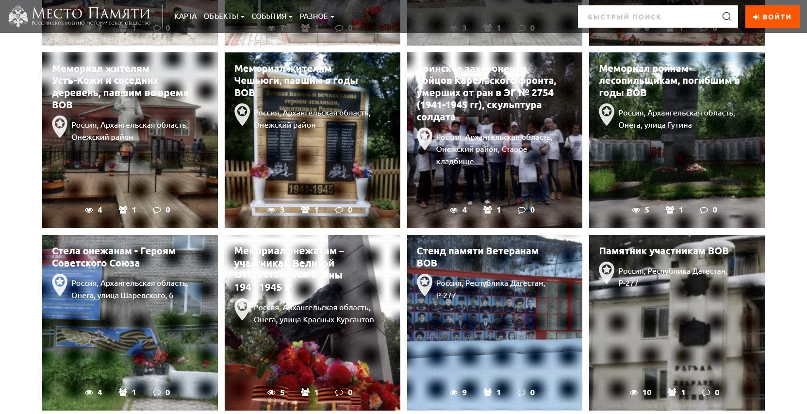 Новый ресурс создан по инициативе Российского военно-исторического общества для объедения усилий граждан в сохранении объектов военной истории России. Менее чем за год, с момента запуска портала «Местопамяти.рф», усилиями добровольцев удалось собрать данные о 10 000 объектах мемориального наследия (в России и зарубежье) и организовать около 200 мероприятий по их благоустройству.