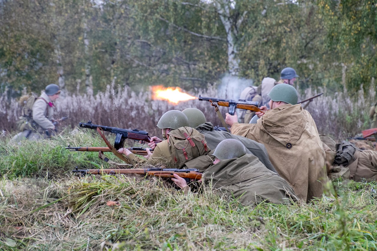 Во второй день фестиваля на поле боя вышло более 500 реконструкторов из разных регионов России и ближнего зарубежья, чтобы воссоздать трагические события первых дней боев за берег Невы в 1941 году. Тогда, 75 лет назад, передовой батальон 115-й стрелковой дивизии скрытно переправился на левый берег Невы и внезапной атакой выбил немцев с передовых позиций. Солдаты поднимались в атаку до трех раз в сутки, а потери Красной армии за то время, пока существовал Невский пятачок (до 1943 года), составили на этой территории более 100 тысяч человек.