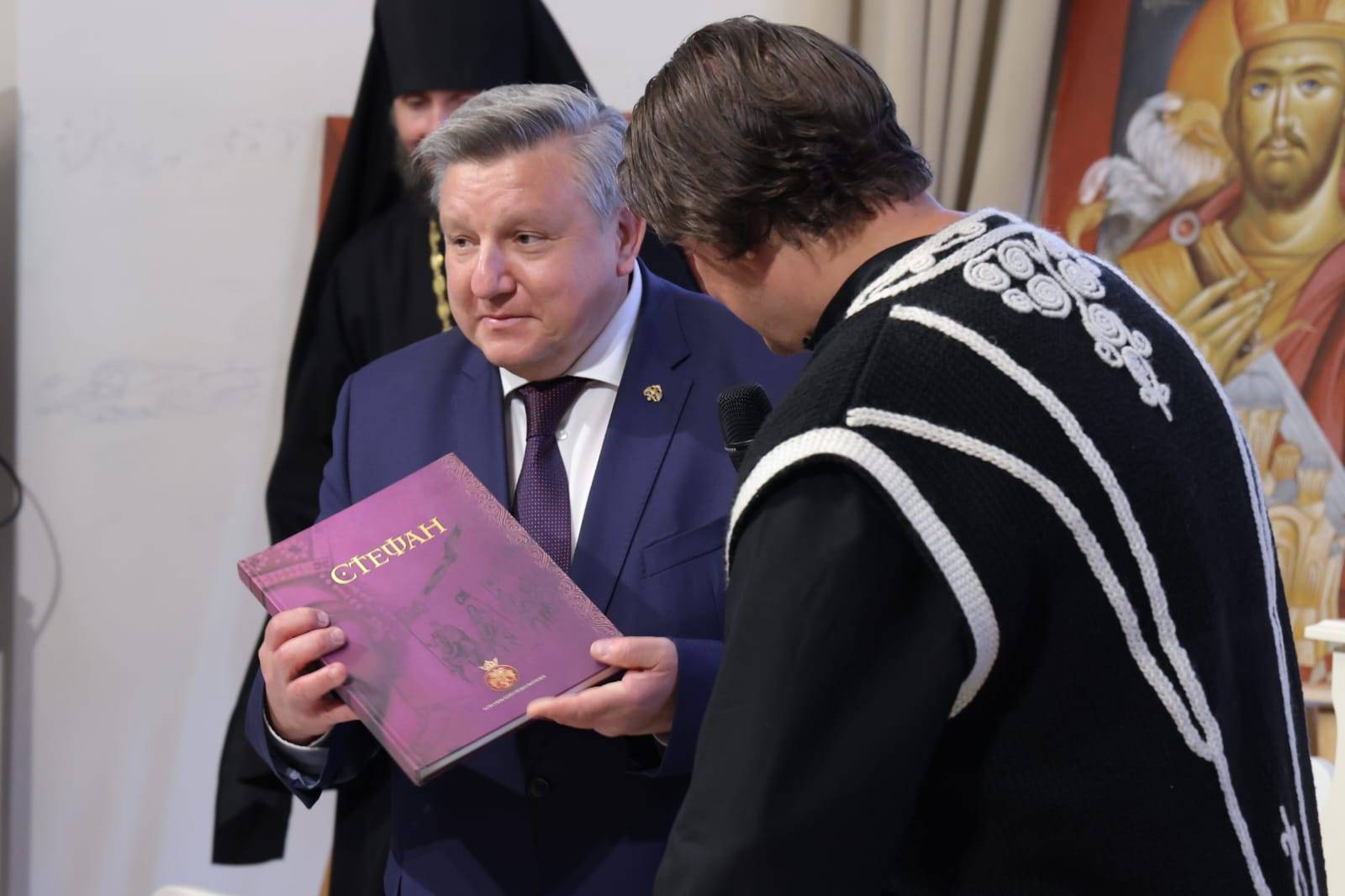 С приветственным словом также выступили посол Республики Сербия в Российской Федерации (2013–2019), член Академии САНУ, иностранный член РАН Славенко Терзич; профессор Богословского факультета университета Белграда, кандидат наук христианской истории в Белградской духовной семинарии протоиерей Радомир Попович; Президент Королевского Ордена Витязей Зоран Душанов Мрдженович.