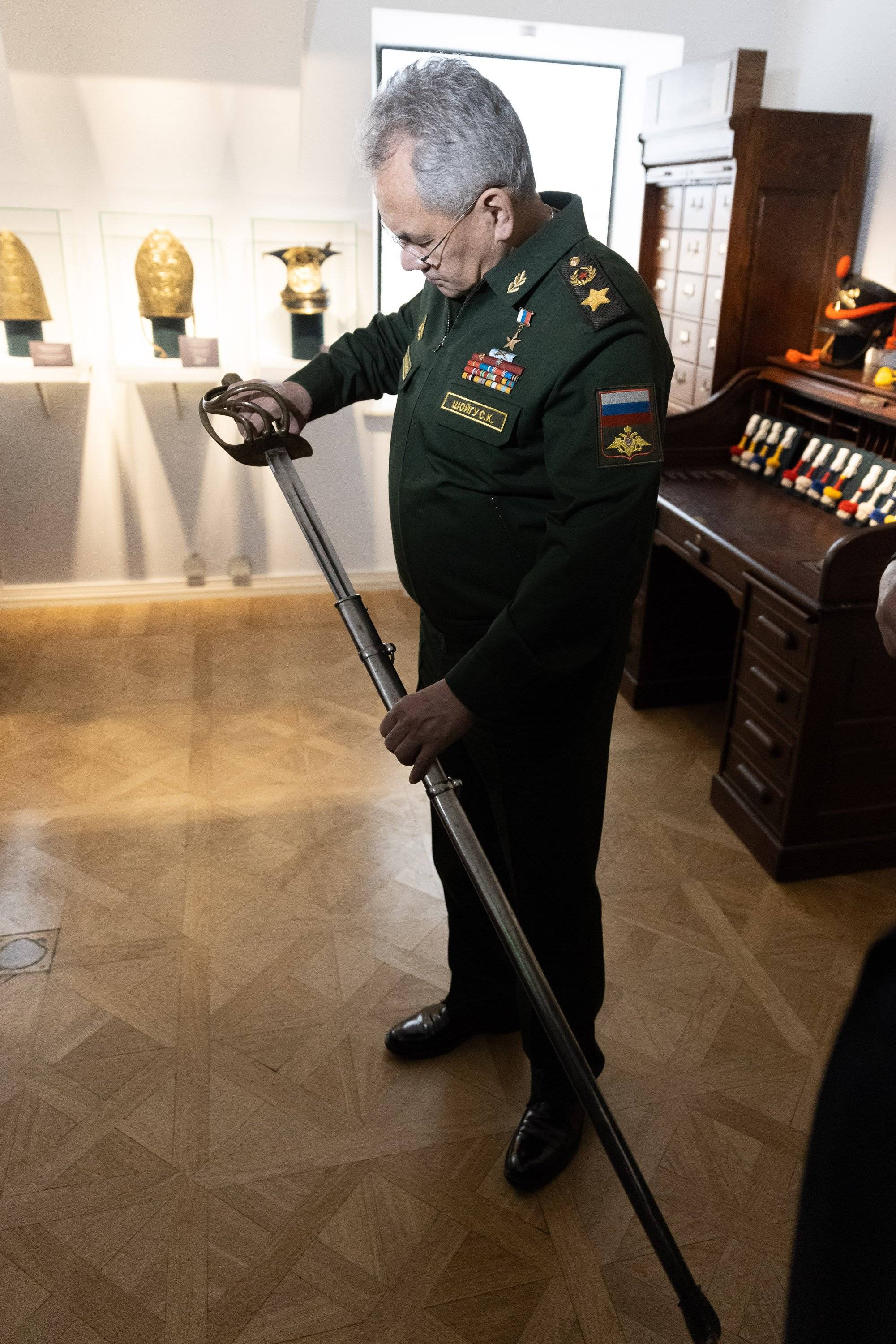 Министр обороны Российской Федерации генерал армии Сергей Шойгу в среду ознакомился с экспозицией Музея военной формы Российского военно-исторического общества. Сергею Шойгу были представлены экспонаты, рассказывающие о военной форме и амуниции, начиная с XVI века и до наших дней.