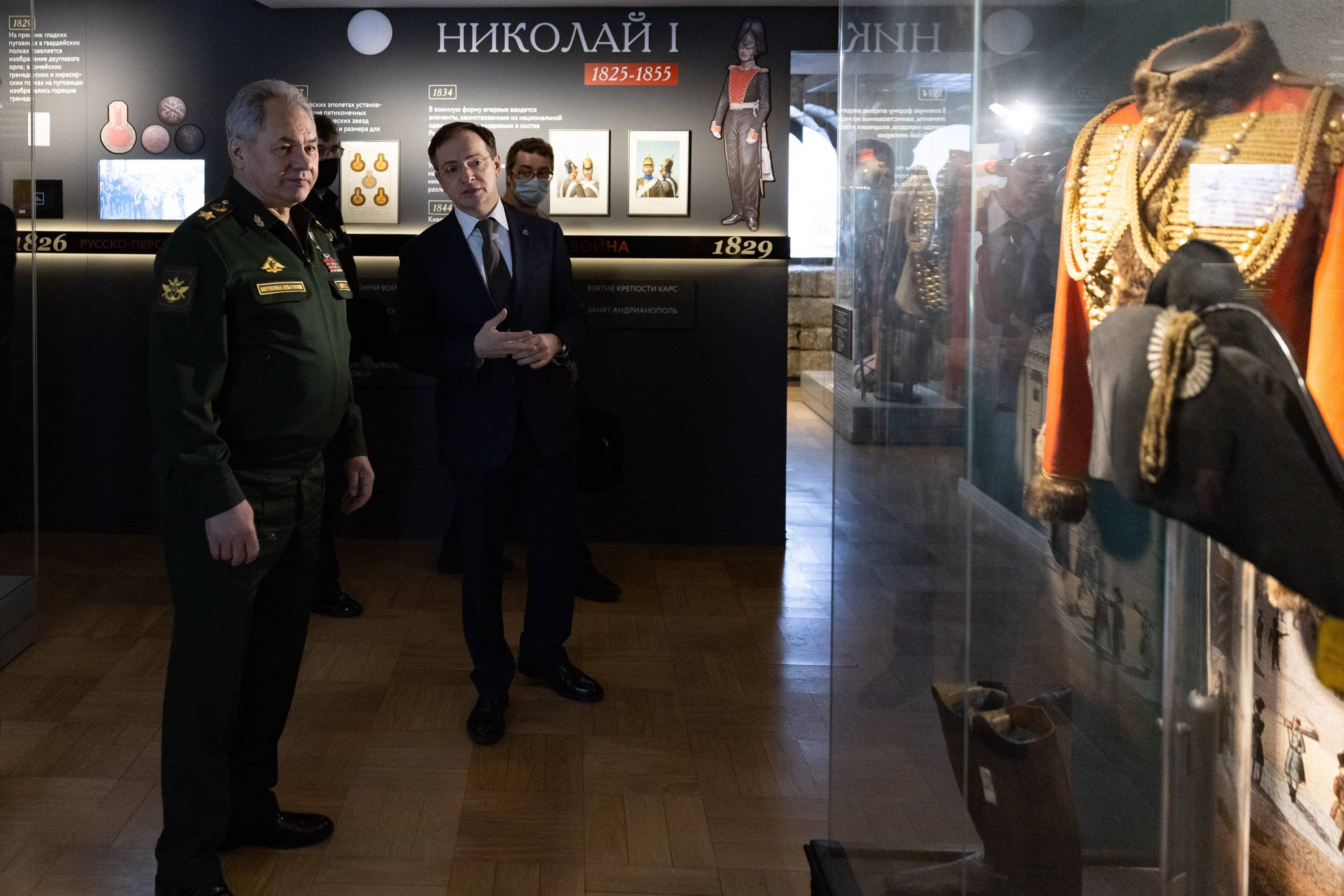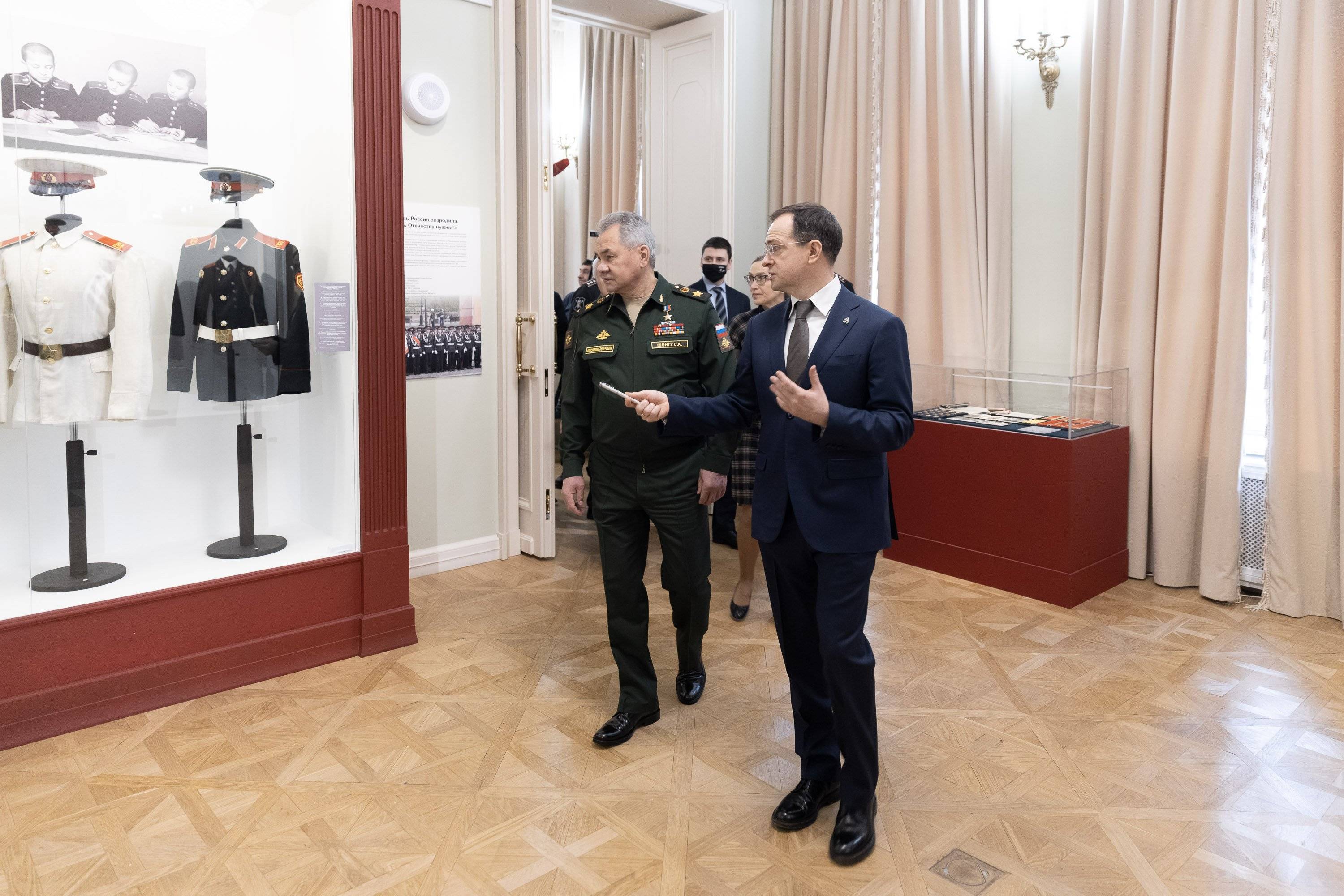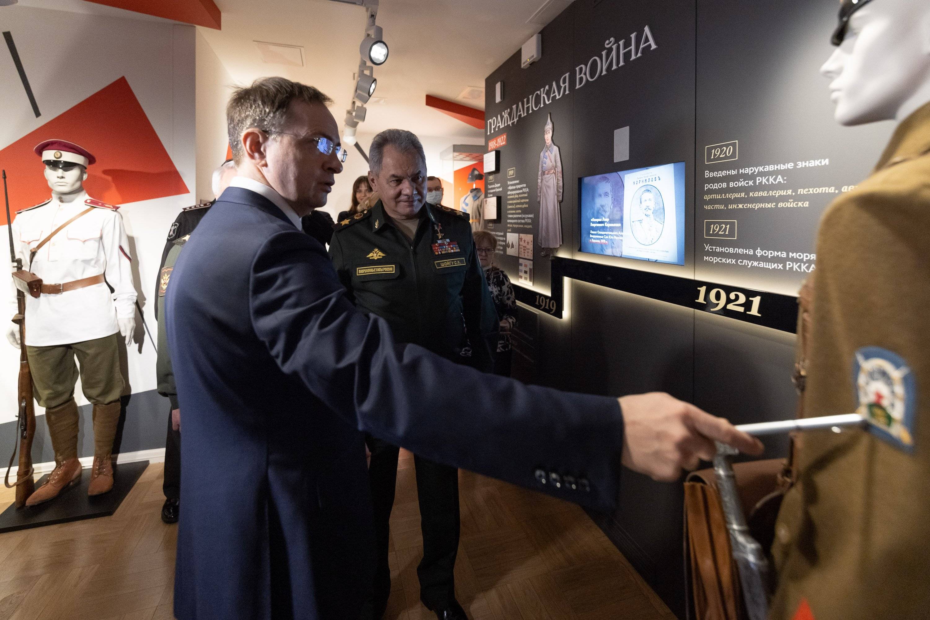 С уникальными экспонатами музея главу военного ведомства ознакомил помощник Президента РФ, Председатель Российского военно-исторического общества Владимир Мединский. Музей также посетил председатель Попечительского совета РВИО, постоянный член Совета безопасности РФ Сергей Иванов.
