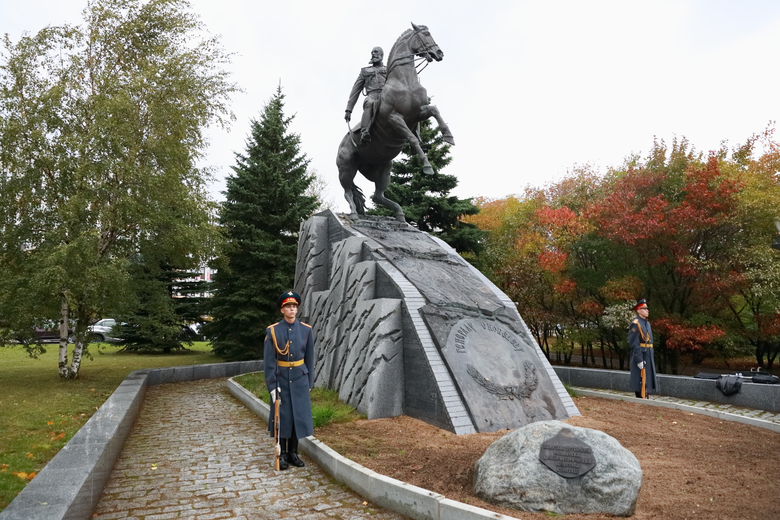 - К счастью, памятник вернулся в Москву. В 2013 году инициативу установки памятника поддержал Министр культуры РФ, Председатель Российского военно-исторического общества Владимир Мединский. И ровно через год, 9 декабря 2014 года, монумент, изготовленный по проекту скульптора Александра Рукавишникова, появился здесь, на очень правильном месте: выпускник Николаевской академии, можно сказать, вернулся в свои родные пенаты, - сказал Андрей Назаров.