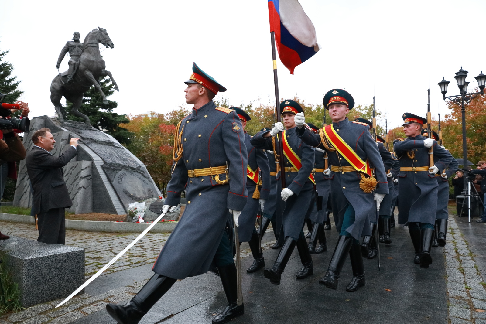 Почтить память генерала Скобелева прибыли руководители и слушатели Академии Генштаба, представители РВИО, болгарская и румынская делегации, представители городских властей, а также учащиеся кадетских классов московских школ.