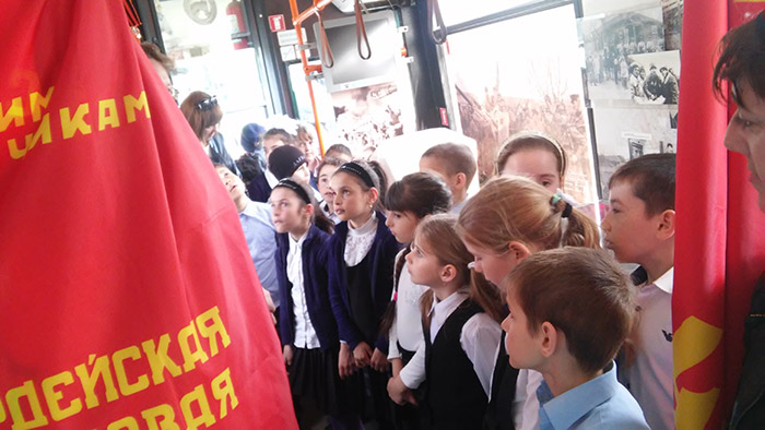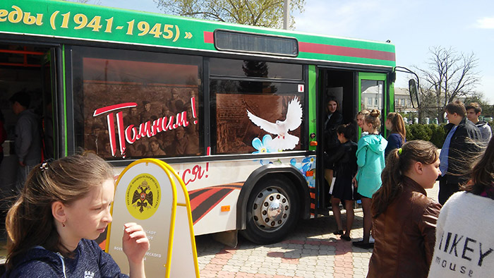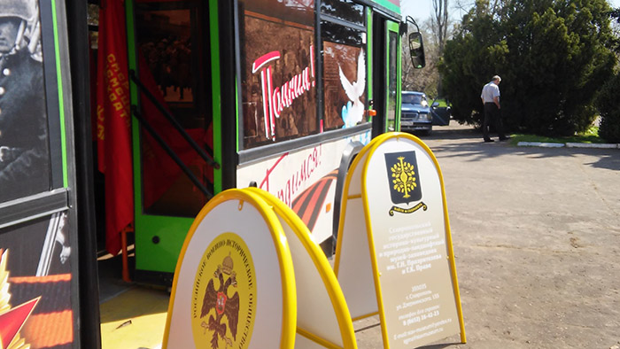 С 17 по 29 апреля, в рамках проведения военно-патриотической акции, в населенных пунктах Ставропольского края будет продемонстрирована передвижная музейная экспозиция, посвященная Великой Отечественной войне. Главная особенность этой выставки будет заключаться в том, что она смонтирована на базе автобуса МАЗ-103.