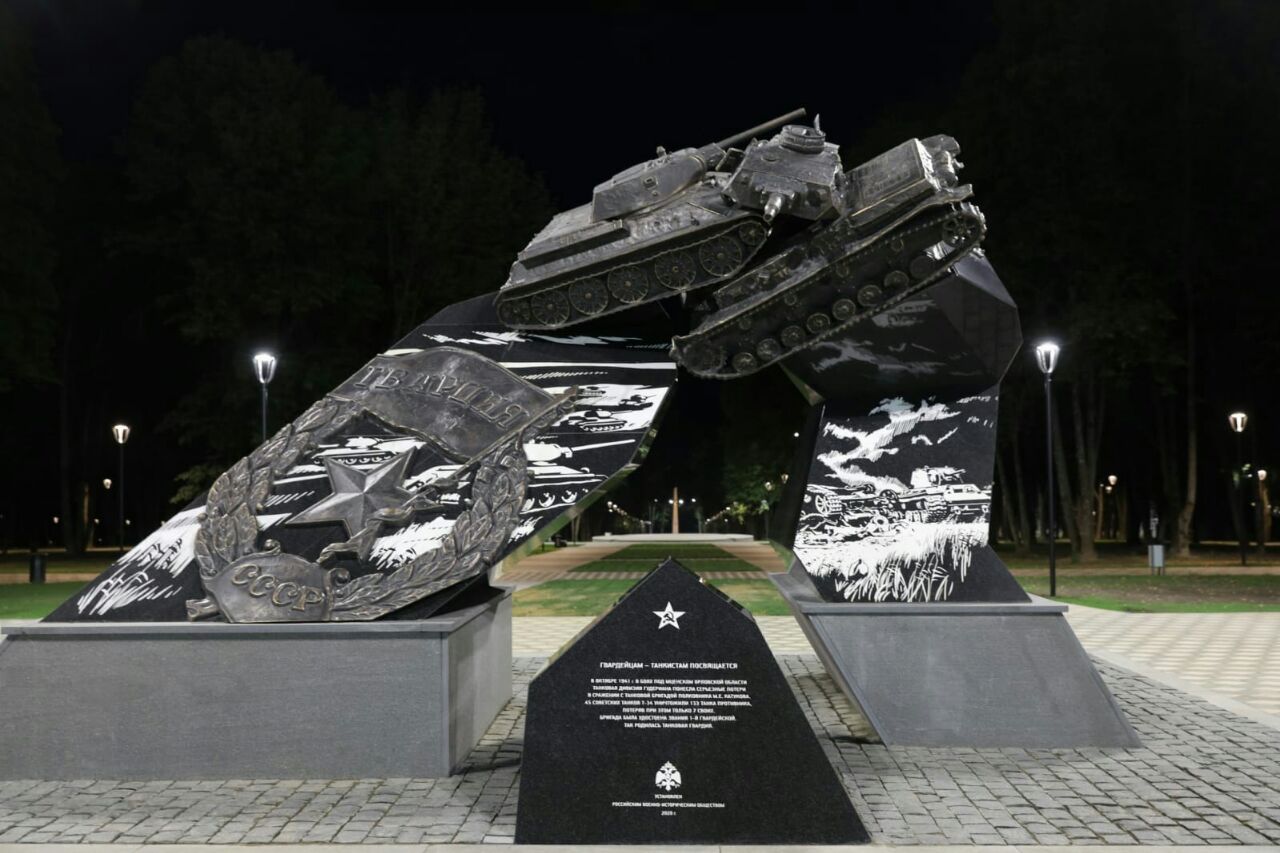 Центральной композицией обновленного парка стал монумент «Гвардейцам-танкистам 1941-го». Установить его предложили ветераны Великой Отечественной войны, совет ветеранов Мценского района Орловской области и региональное отделение РВИО в Орловской области. Изначально памятник планировалось установить на территории мемориального комплекса в честь 60-летия танковой гвардии Советского Союза, где похоронены неизвестные воины Красной Армии, погибшие при освобождении Мценского района в июле 1943 года. Осенью 2020 года губернатор Орловской области Андрей Клычков предложил Ростиславу Мединскому перенести памятник в исторический центр Орла в Парк Победы.