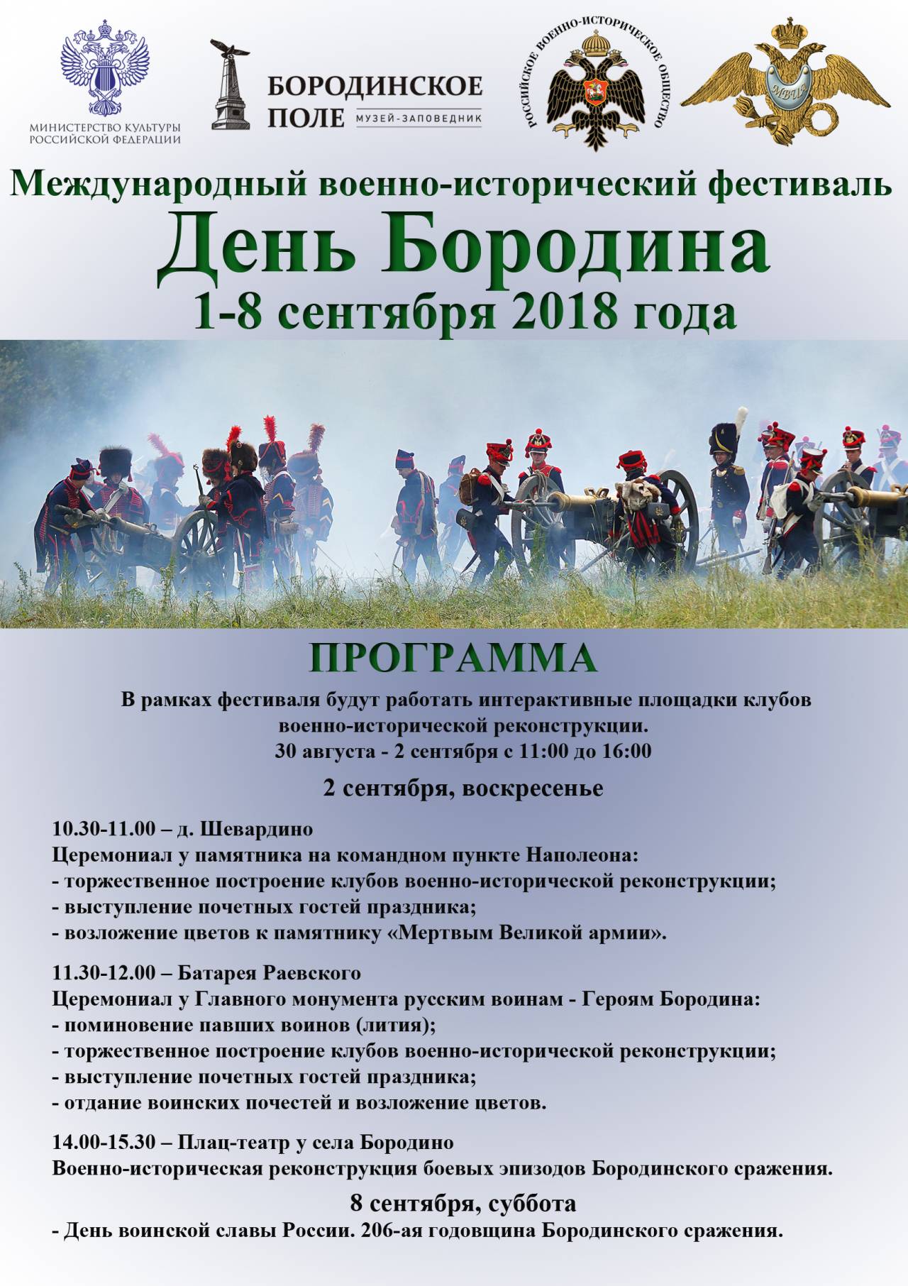 September 2, 2018 the Museum-Reserve "Borodino Field" (Moscow region) will host the International Military Historical Festival, dedicated to the 206th anniversary of the Battle of Borodino.
