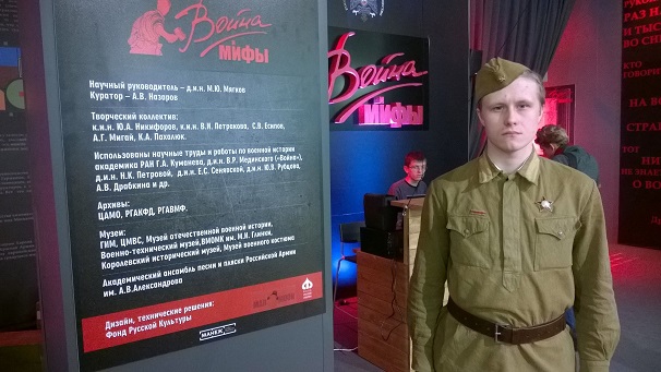 Выставка «Война и мифы» имеет интерактивный формат. Посетитель может самостоятельно – с помощью тач-скринов, имеющих интуитивно понятный интерфейс, – изучить все накопившиеся за последние 30 лет мифы о Великой Отечественной и сделать собственные выводы. Тысячи страниц фактов, фото, документов… Путеводителем здесь служит знаменитая книга В.Мединского «Война». Маршрут выставки проходит через залы «Панфиловцы», «Цена войны», «Массовый героизм», «Кто лучше воевал», «Кинозал», «Победа». В каждом посетителей ждут открытия – большие и маленькие. В борьбе за историческую правду важно все.