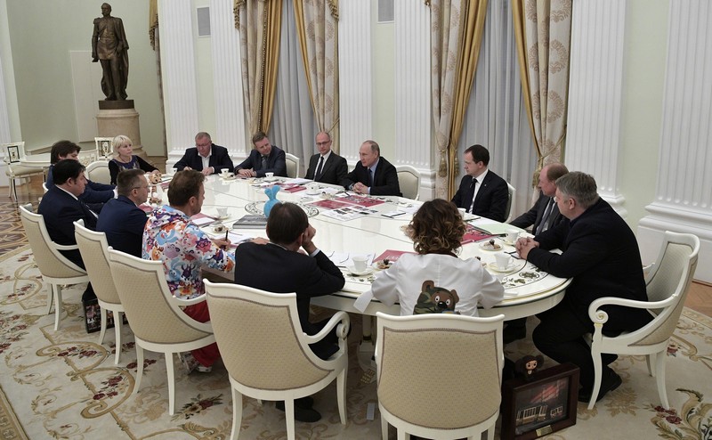 В Кремле состоялась встреча Президента Российской Федерации Владимира Путина с представителями ведущих отечественных мультипликационных студий — «Союзмультфильм», «Мельница», «Рикки», «Анимаккорд», «Wizart» и «КиноАтис». В мероприятии также приняли участие советник Президента Российской Федерации по культуре Владимир Толстой, первый заместитель руководителя Администрации Президента РФ Сергей Кириенко и Министр культуры Российской Федерации, Председатель Российского военно-исторического общества Владимир Мединский.