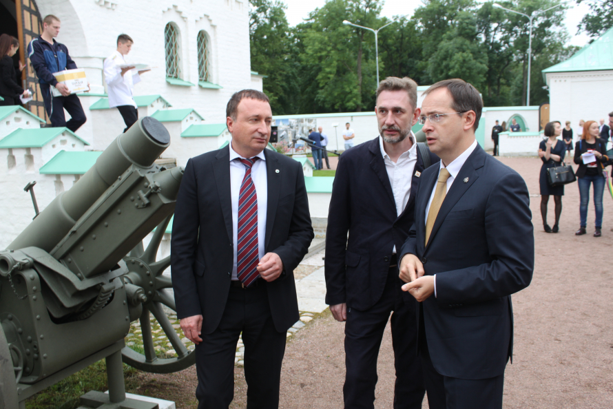 Председатель Российского военно-исторического общества, Министр культуры Российской Федерации Владимир Мединский принял участие в церемонии передачи музею «Царское Село» архива семьи Романовых и открытии завершающей очереди экспозиции «Россия в Великой войне» в Ратной палате.