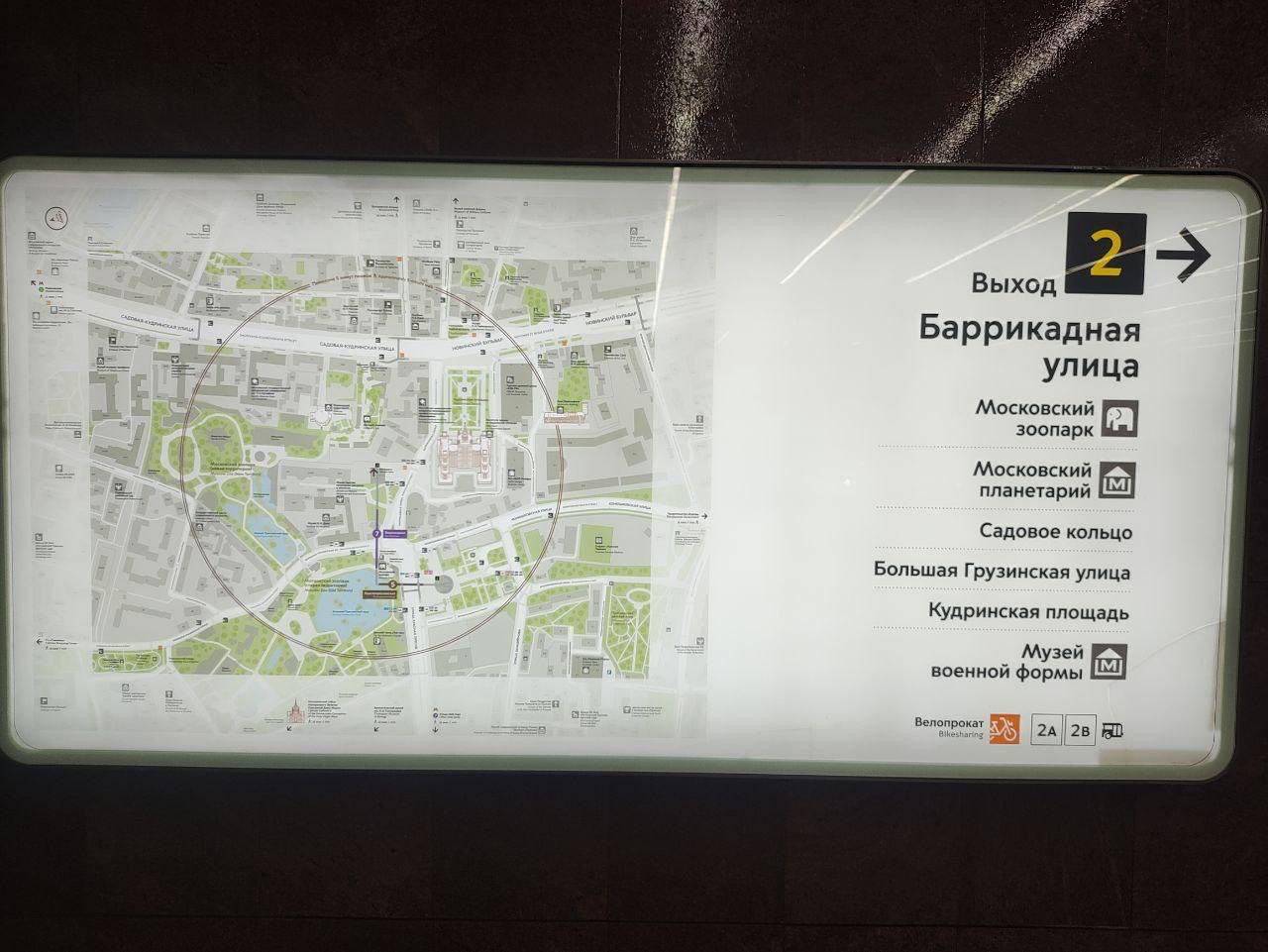 Навигационные указатели установлены в вестибюлях станций «Баррикадная» и «Третьяковская».
