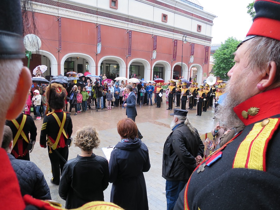 Торжественное открытие состоялось в Лаврушинском переулке у стен знаменитого Дома писателей. Гостей встречали гренадеры кремлевского караула и Центральный военный оркестр Министерства обороны Российской Федерации под руководством заслуженного артиста России Сергея Дурыгина.
