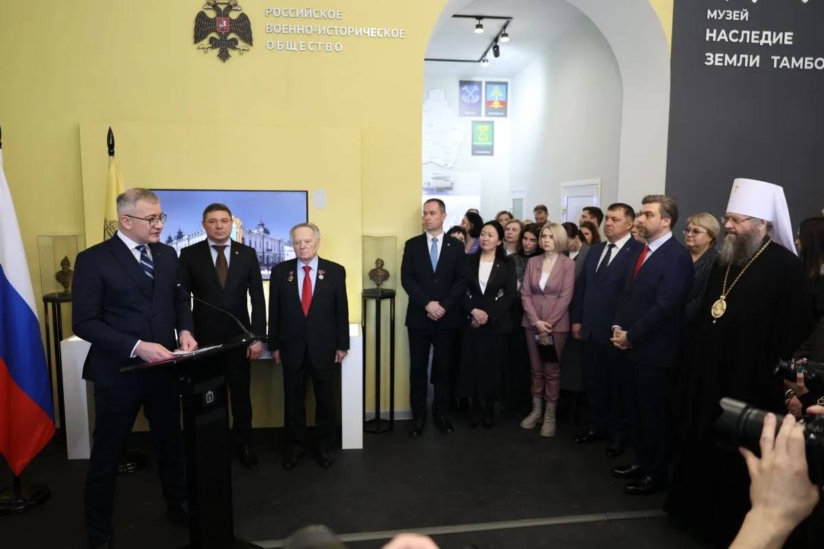 - Уникальная экспозиция, рассказывающая об истории и культуре нашего региона, стала результатом совместной работы Российского военно-исторического общества и правительства Тамбовской области. Инициатором и идейным вдохновителем является советник Председателя Российского военно-исторического общества Ростислав Игнатьевич Мединский. Проект поддержал помощник Президента Российской Федерации, Председатель РВИО Владимир Ростиславович Мединский, который возглавляет оргкомитет празднования 250-летия Тамбовского наместничества, - отметил Глава области.
