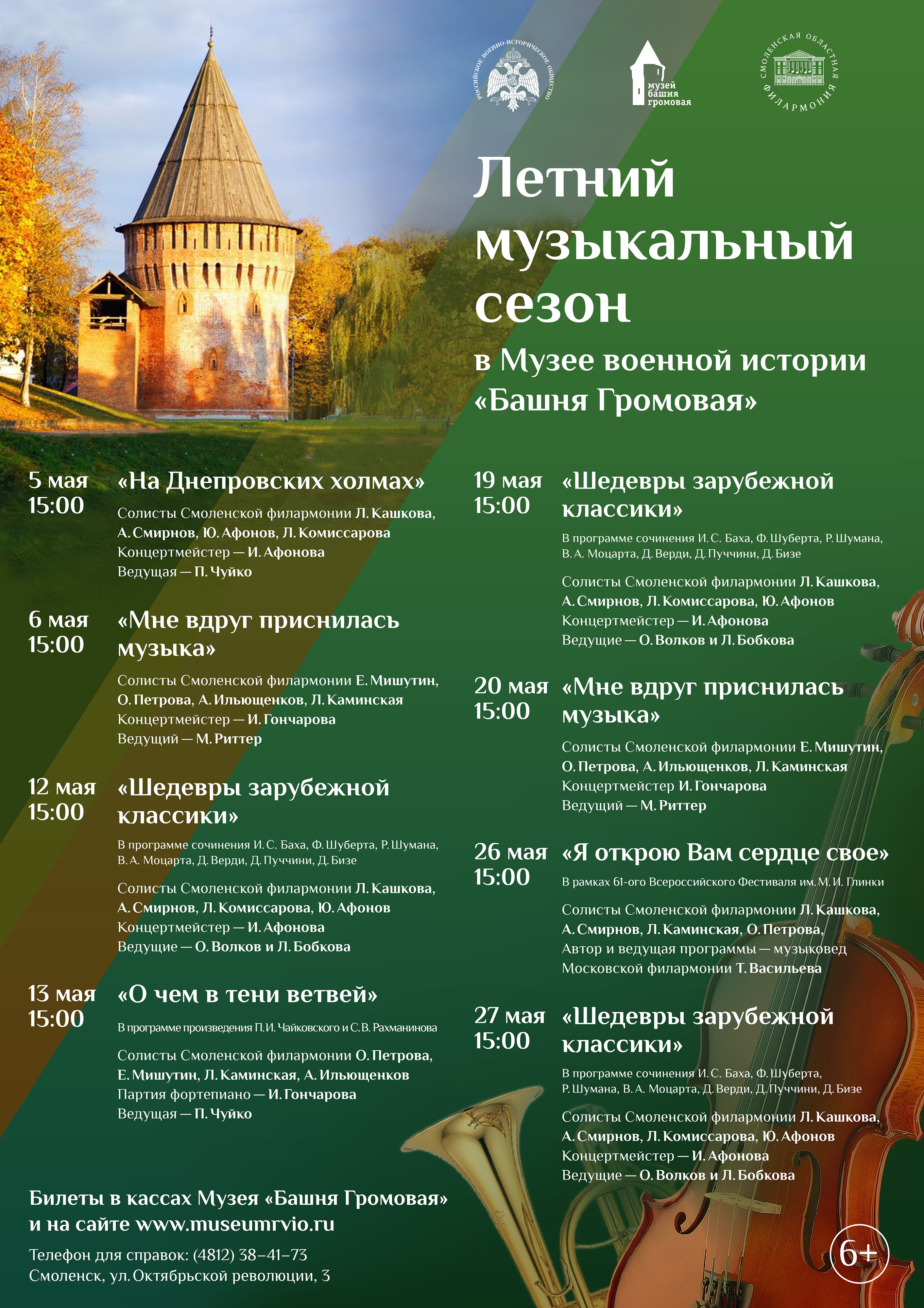 В Музее военной истории РВИО «Башня Громовая» (Смоленск, ул.Октябрьской революции, 3) продолжается летний музыкальный сезон.