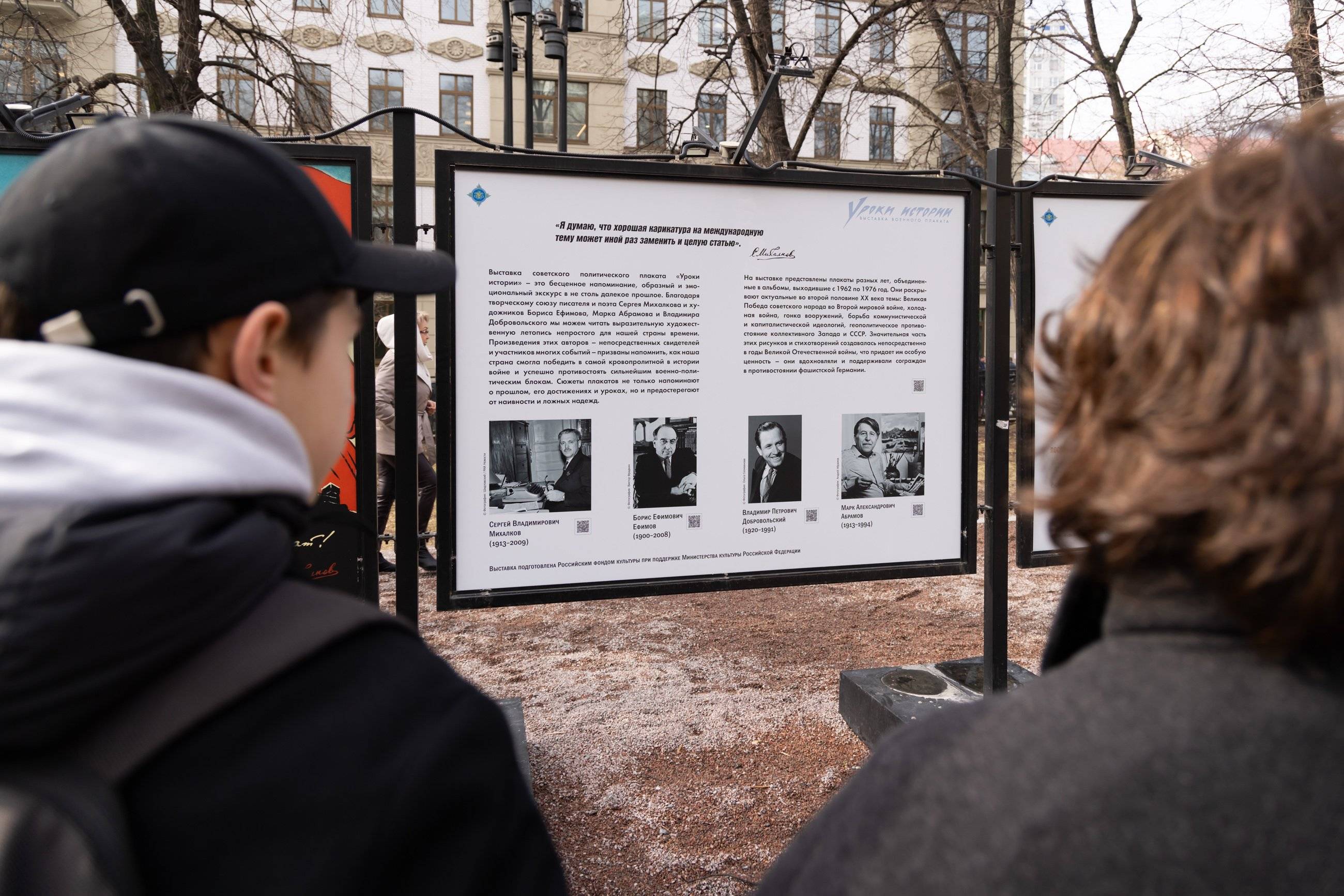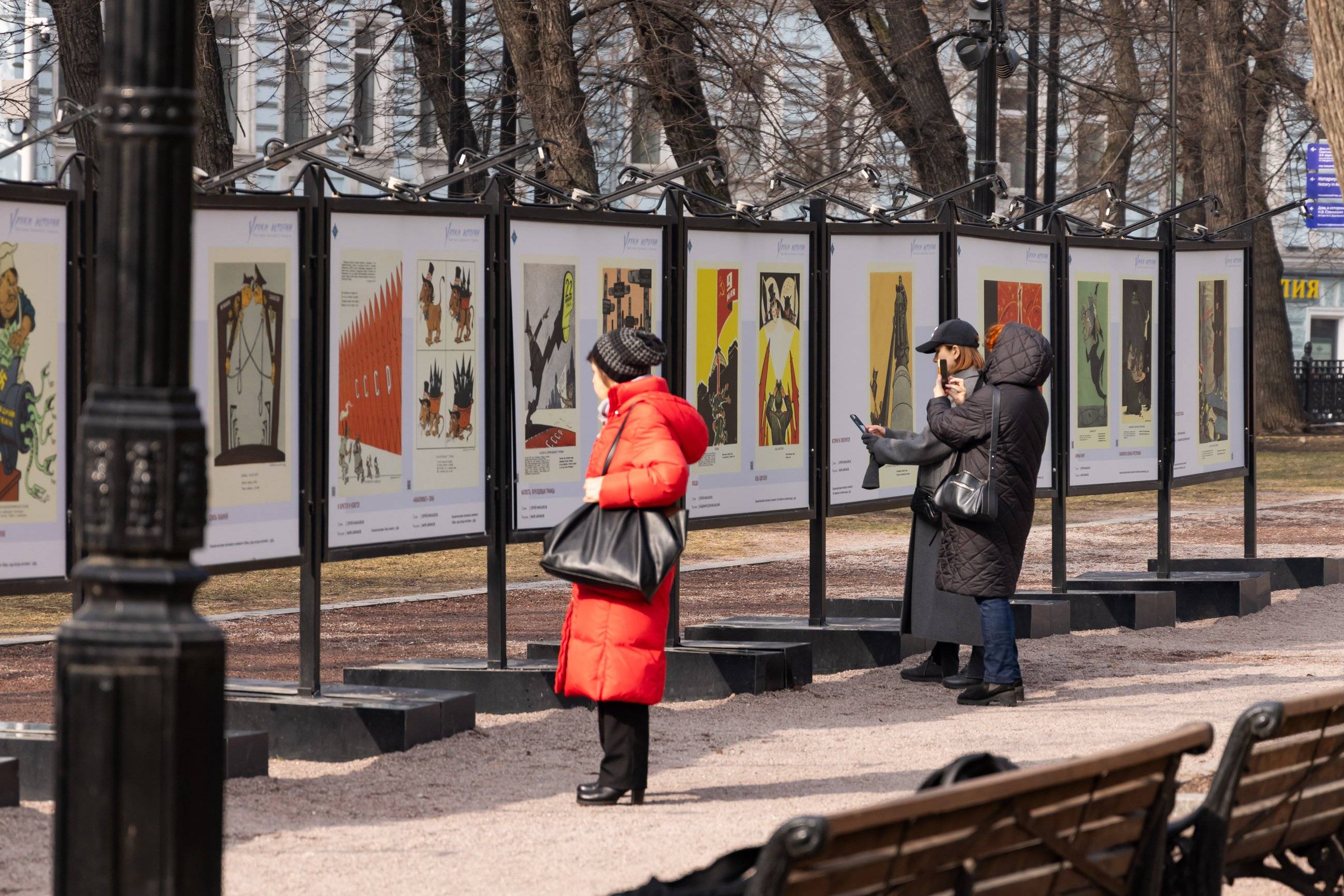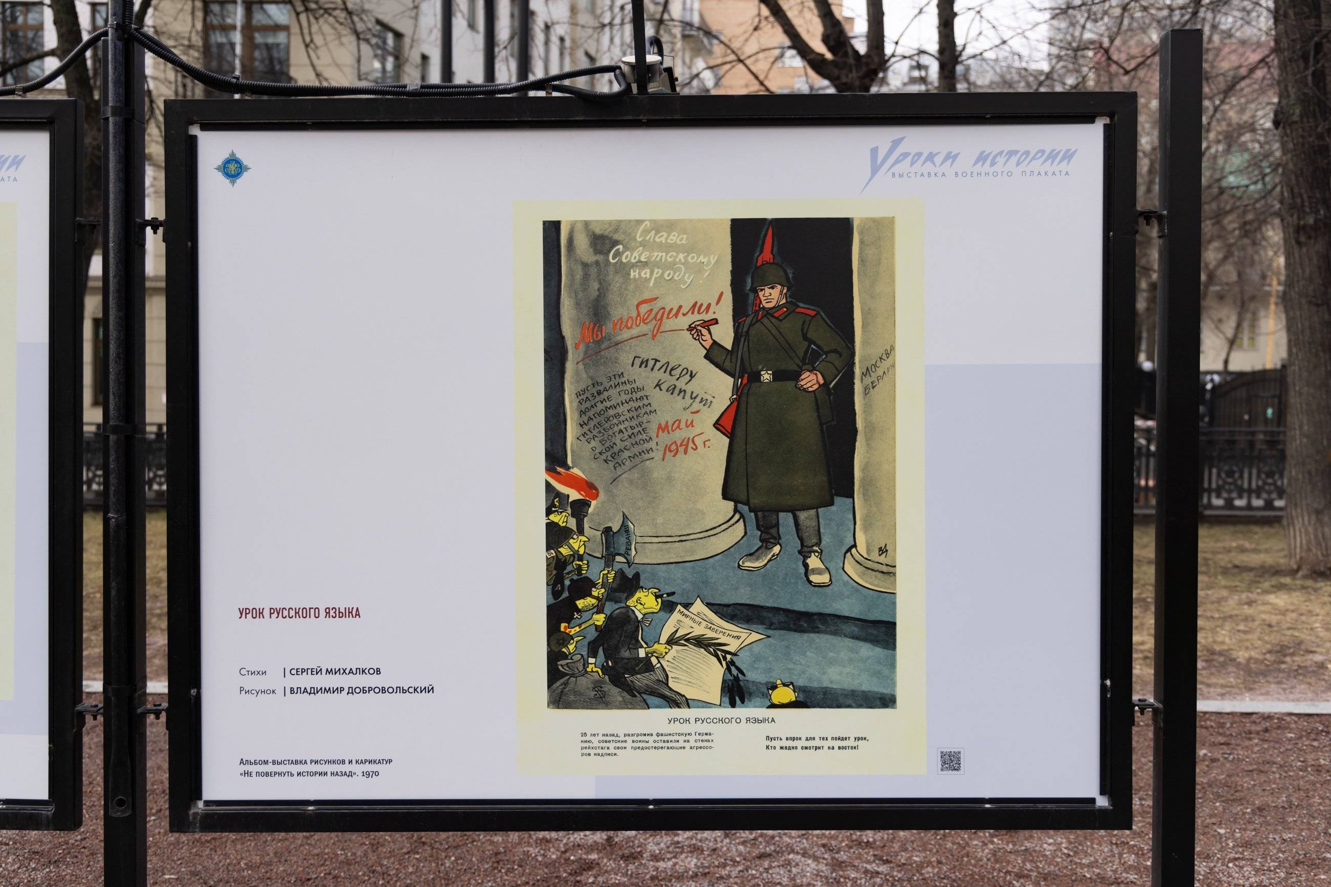 На Гоголевском бульваре в Москве открыта выставка военного плаката «Уроки истории». Мероприятие приурочено к 112-ой годовщине со Дня рождения детского писателя Сергея Михалкова и к 80-летию Великой Победы.