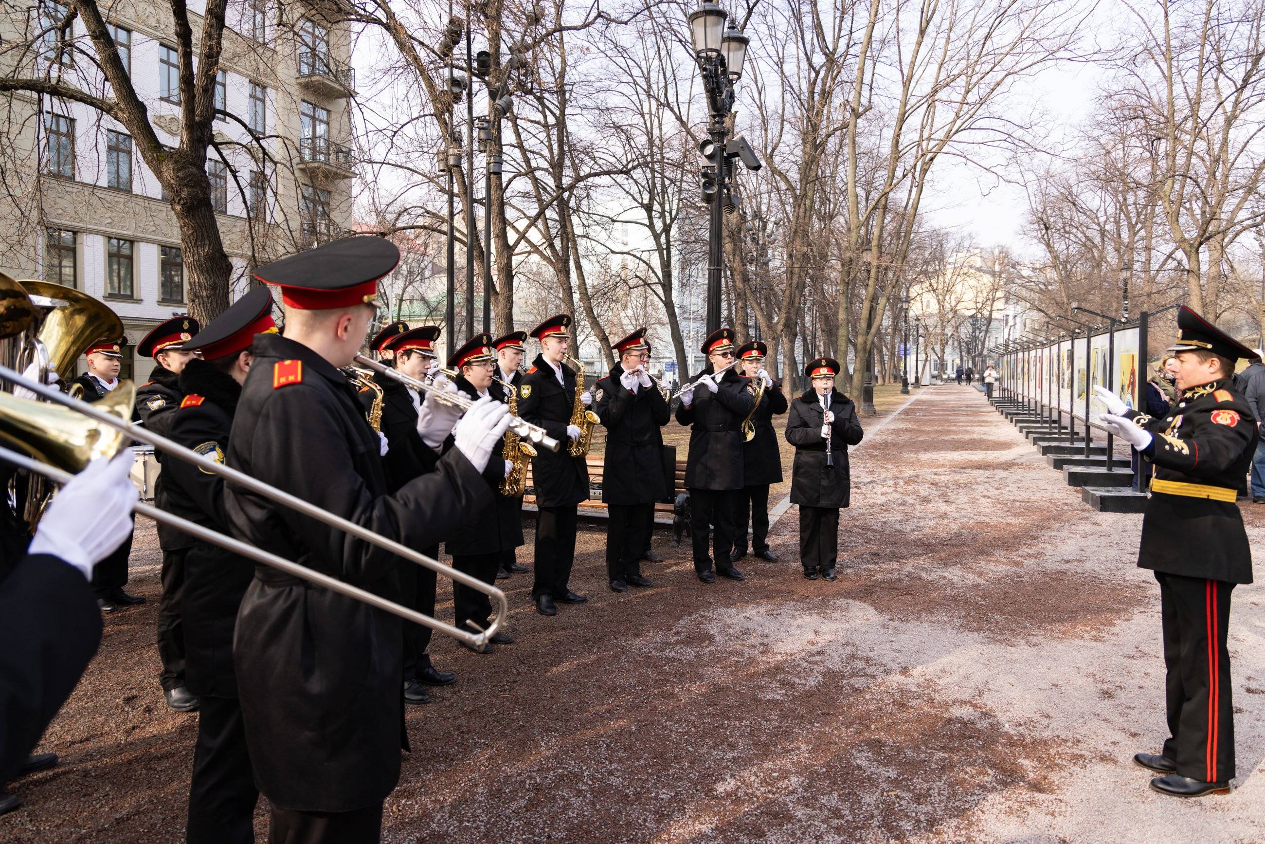 Мероприятие прошло в сопровождении cводного оркестра Московского кадетского музыкального корпуса.