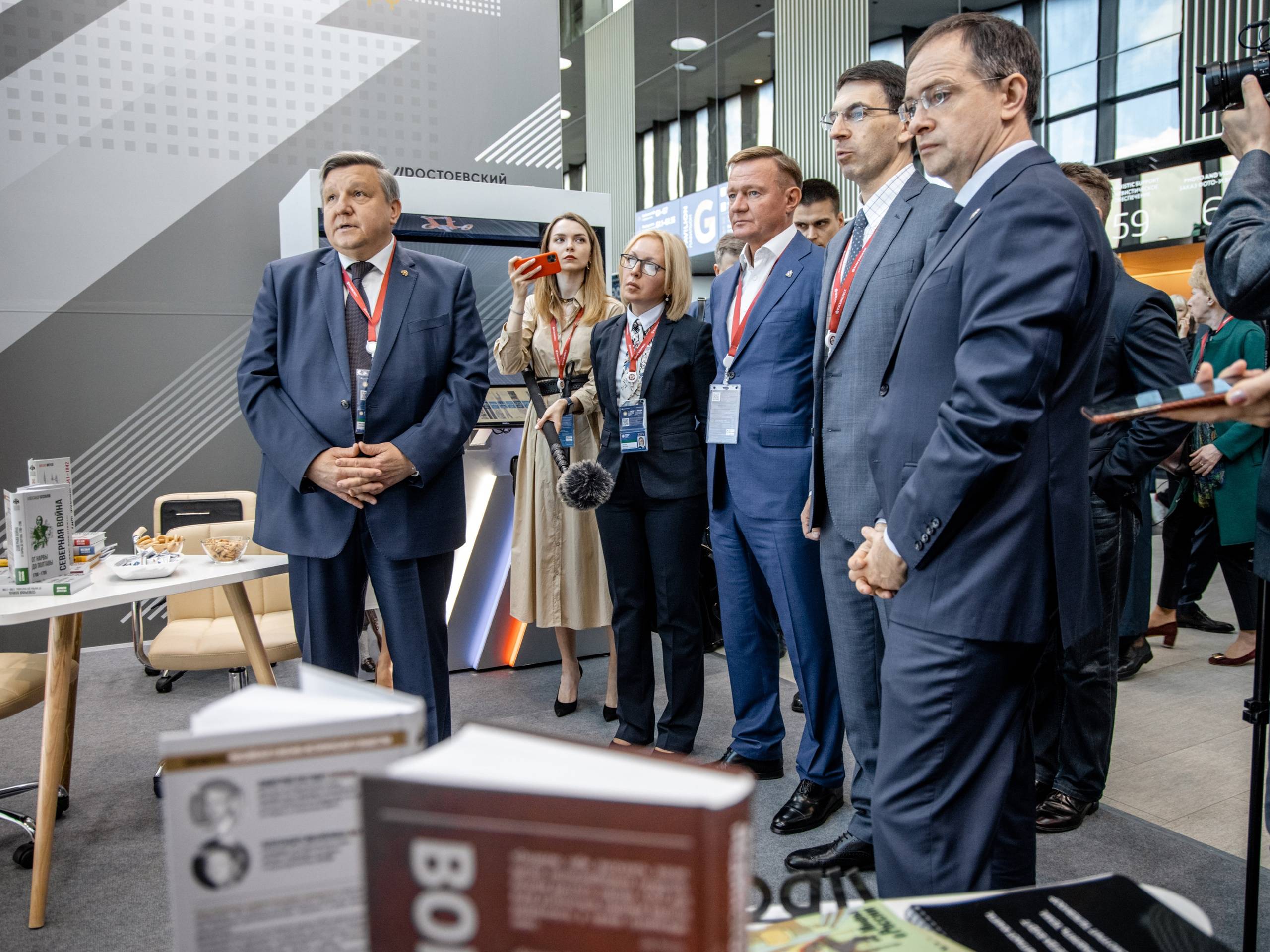 Сегодня на стенде Российского военно-исторического общества на Петербургском международном экономическом форуме состоялась рабочая встреча сопредседателей Организационного комитета по созданию на территории Курской области Мемориального комплекса «Курская битва».