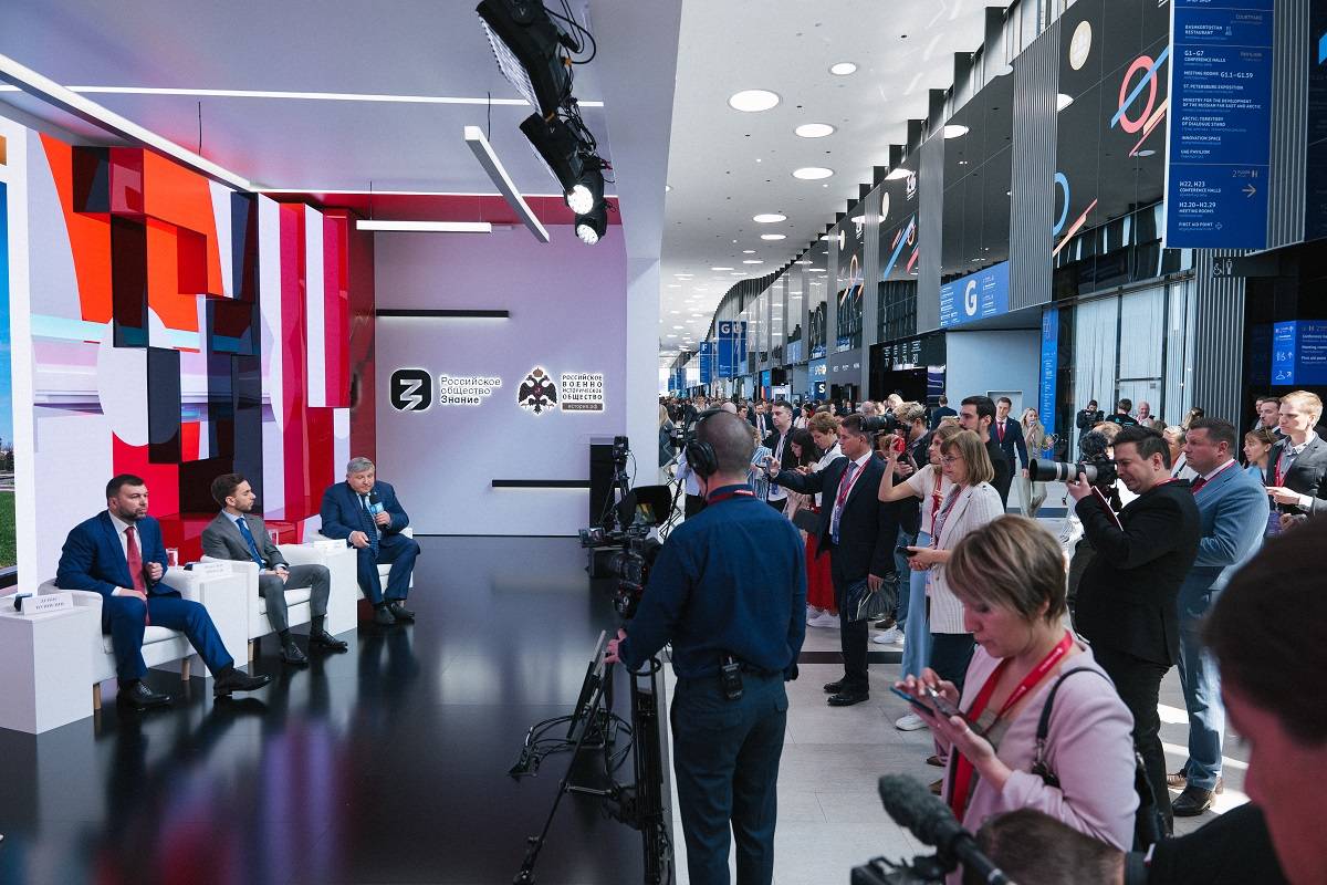 Студия РВИО и Общества «Знание» работает с 14 по 17 июня. Среди гостей студии – федеральные министры, главы регионов, деятели науки, культуры и спорта, бизнесмены, руководители общественных организаций и журналисты. В дни форума они обсуждают перспективы развития и вопросы сохранения исторической памяти для будущего страны, возможности роста национальной экономики в эпоху глобального перелома, новые подходы к международному сотрудничеству и развитие культурного и технологического суверенитета России.