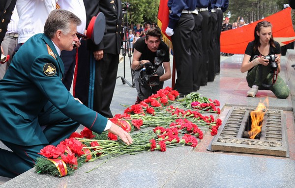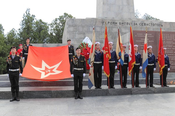 У Обелиска Славы воинам-освободителям состоялся митинг-реквием. В память о подвигах защитников и освободителей города-героя к Вечному огню вынесли прославленные Боевые Знамена частей и подразделений, принимавших участие в боях за Севастополь.